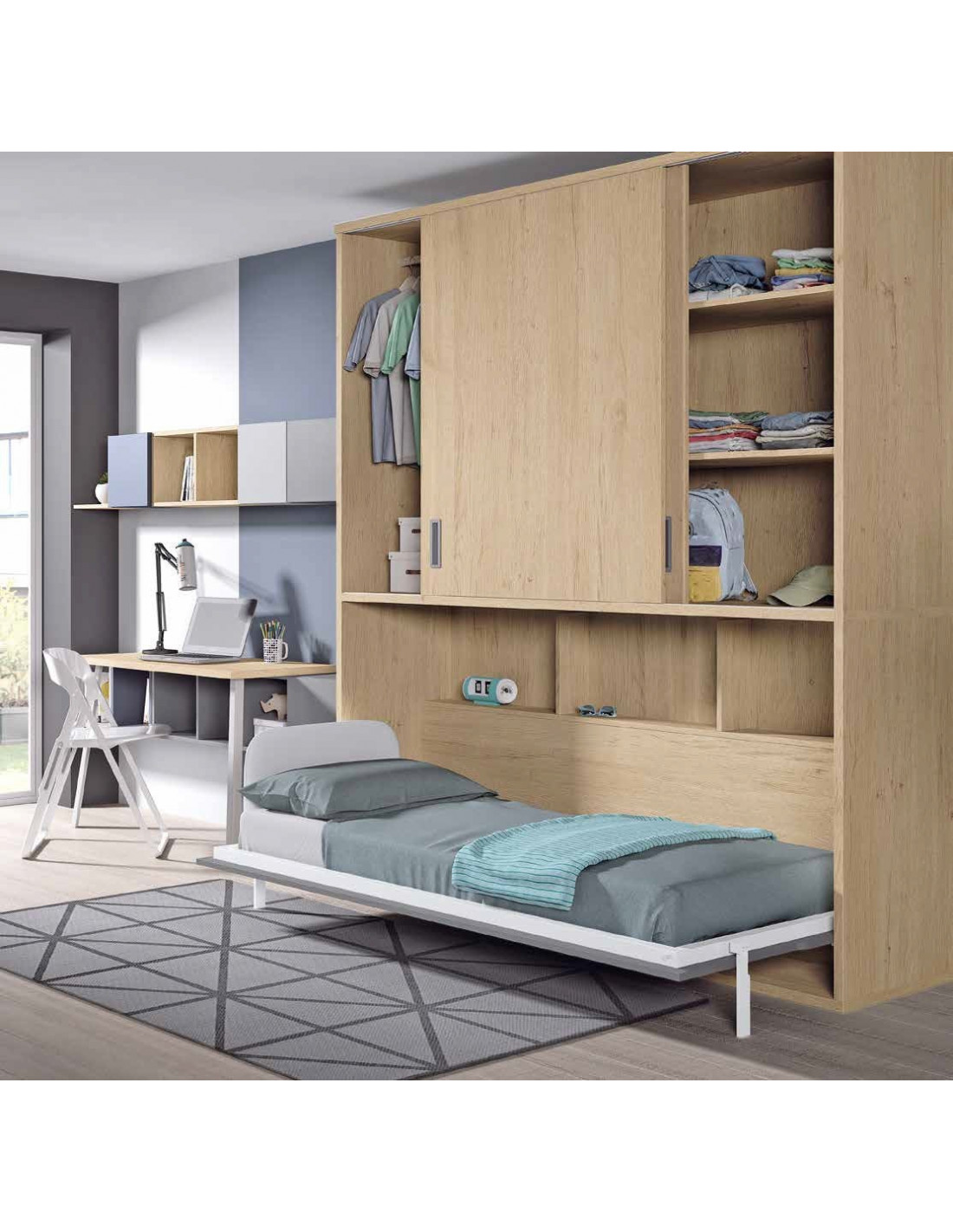 Cama abatible horizontal 90/105 con armario corredera integrado con capacidad de hasta 26 cm. de altura de colchón