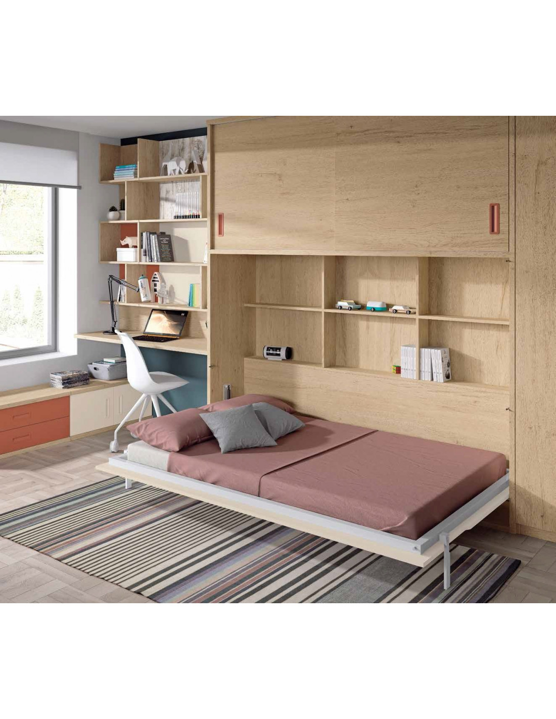CAMA HORIZONTAL ABATIBLE 135 / 150 CON ARMARIO CORREDERO H240