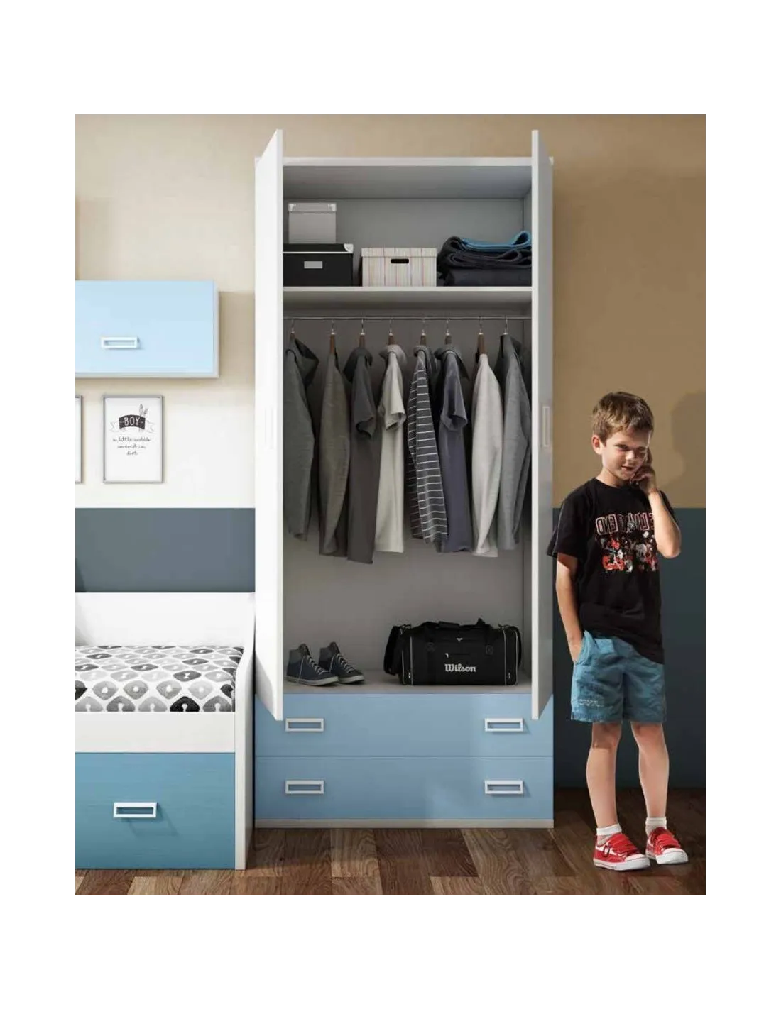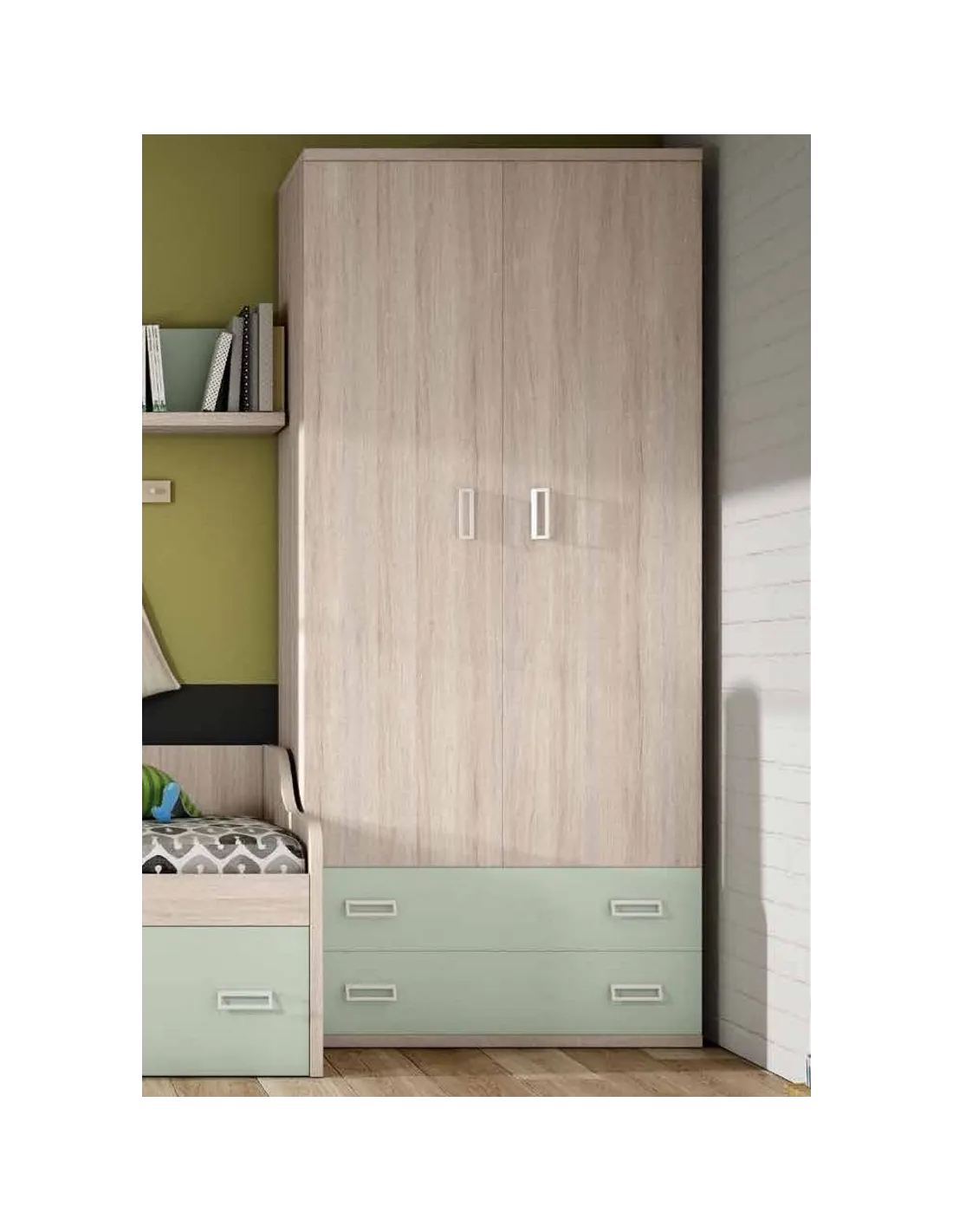 Armario juvenil Lolli dos puertas y dos cajones altura 225 cm. con diez colores a elegir