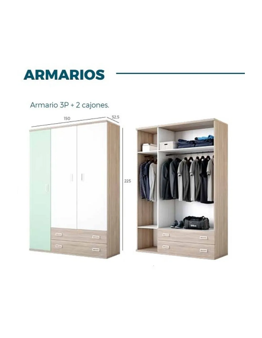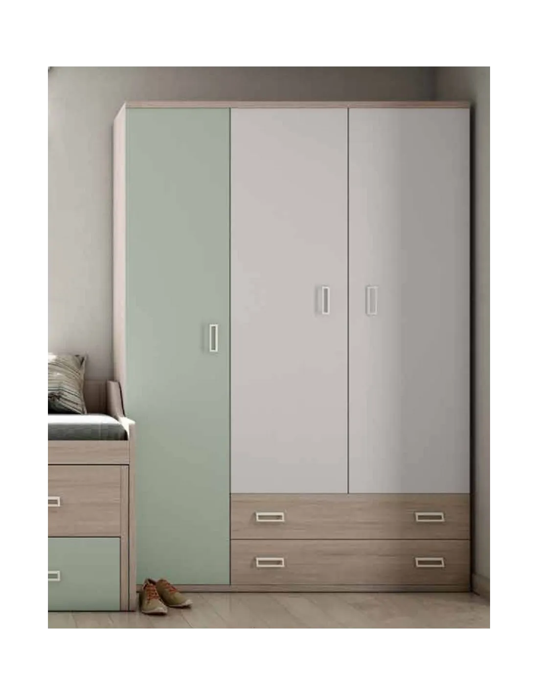 Este armario juvenil de tres puertas tiene diez colores a elegir y está disponible en una única medida: