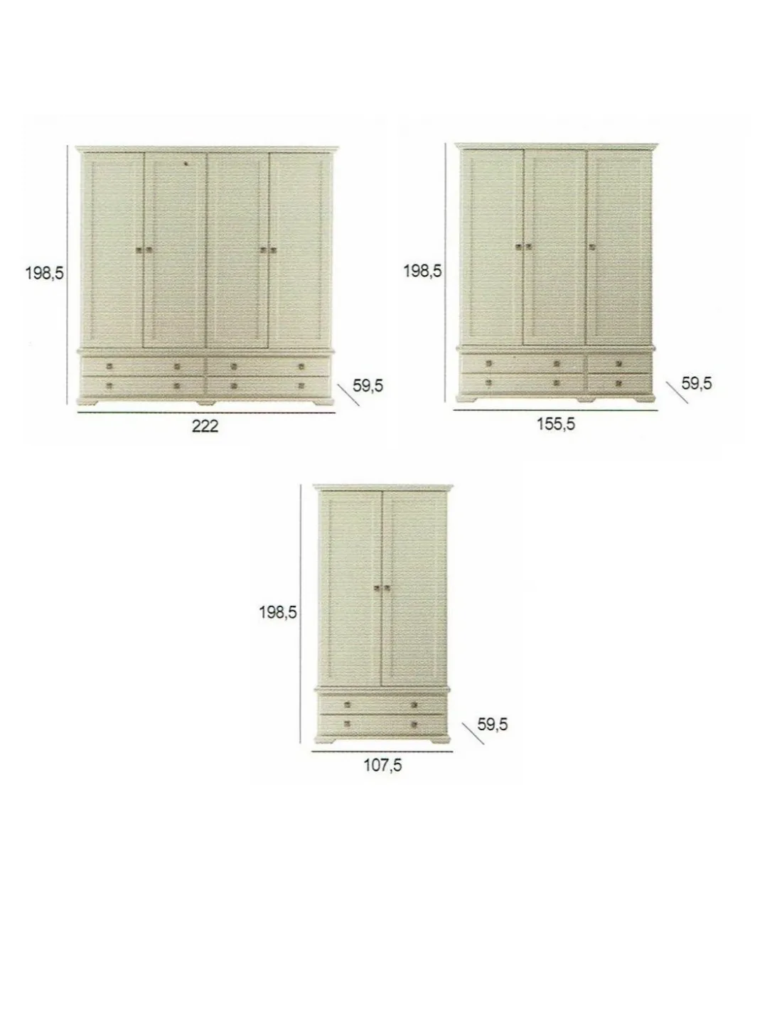 - Armario madera diseño clásico: 198,5 x (107,5 - 155,5 - 222) x 59,5 cm.