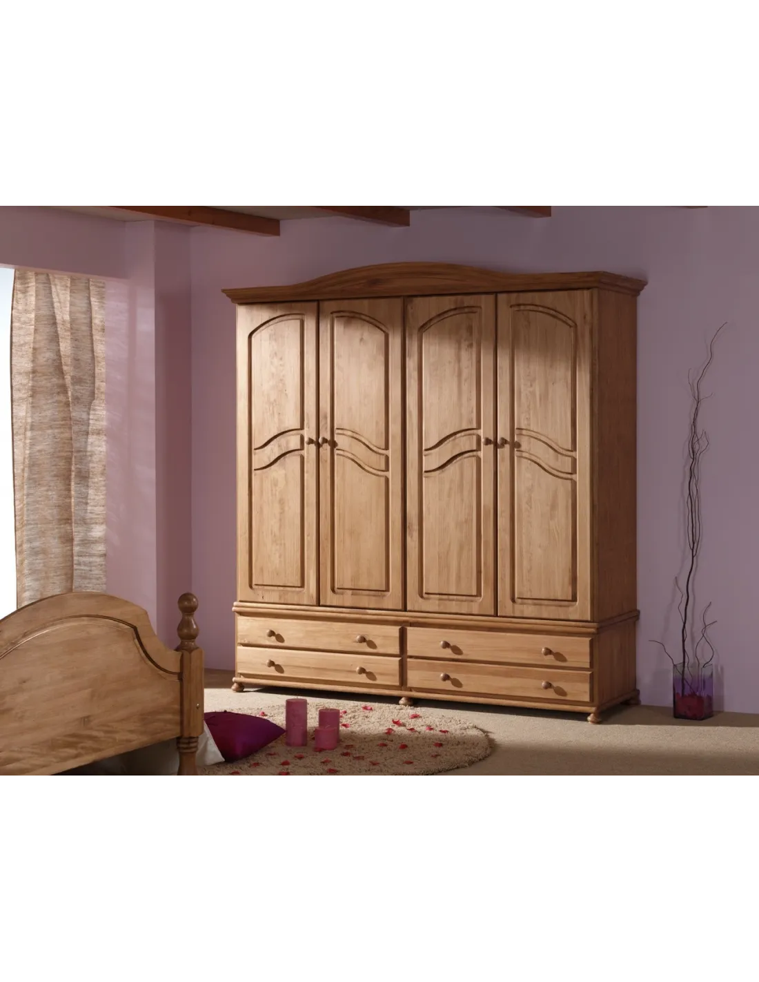 Armario Provenza en madera maciza de pino con 4 puertas con capota