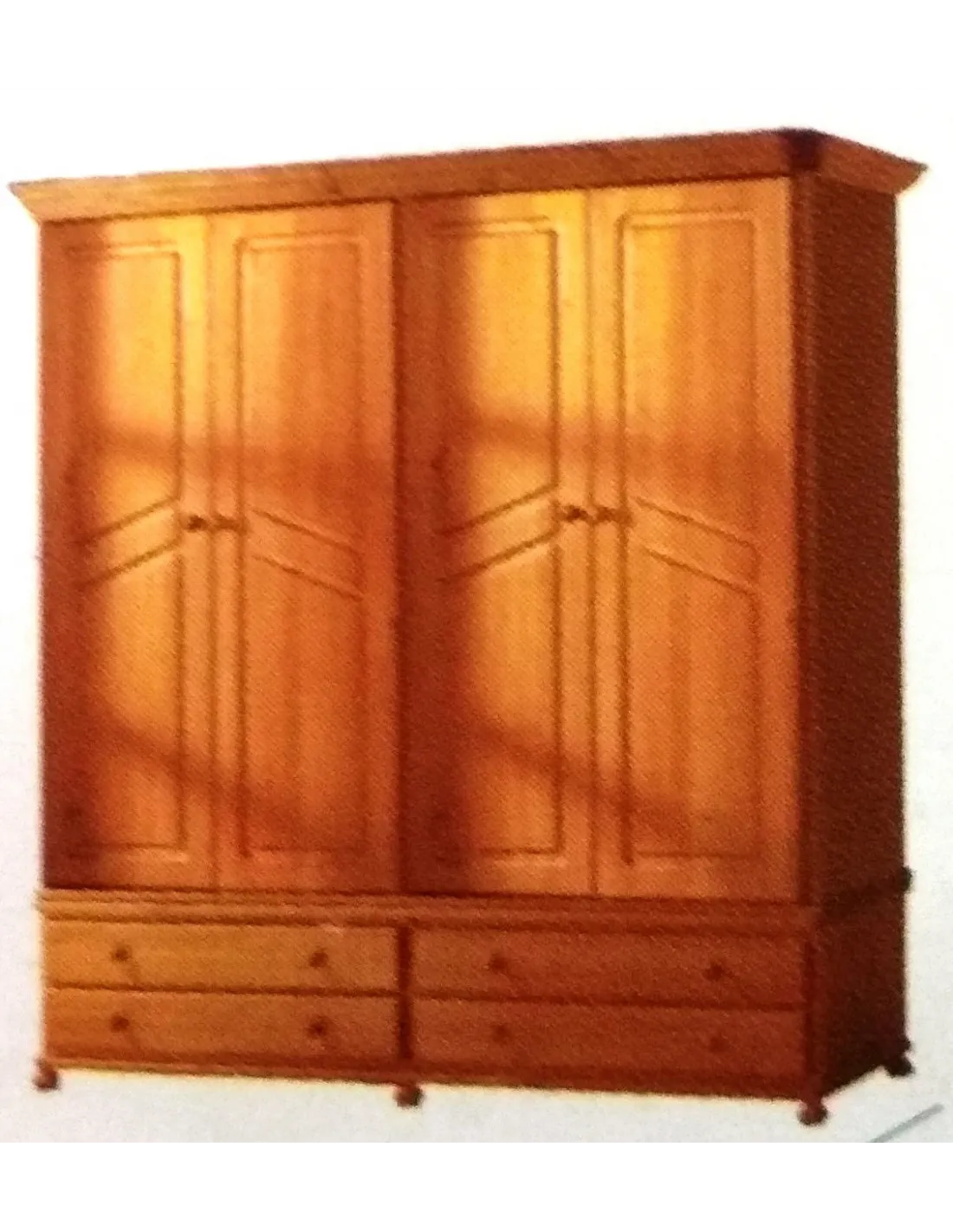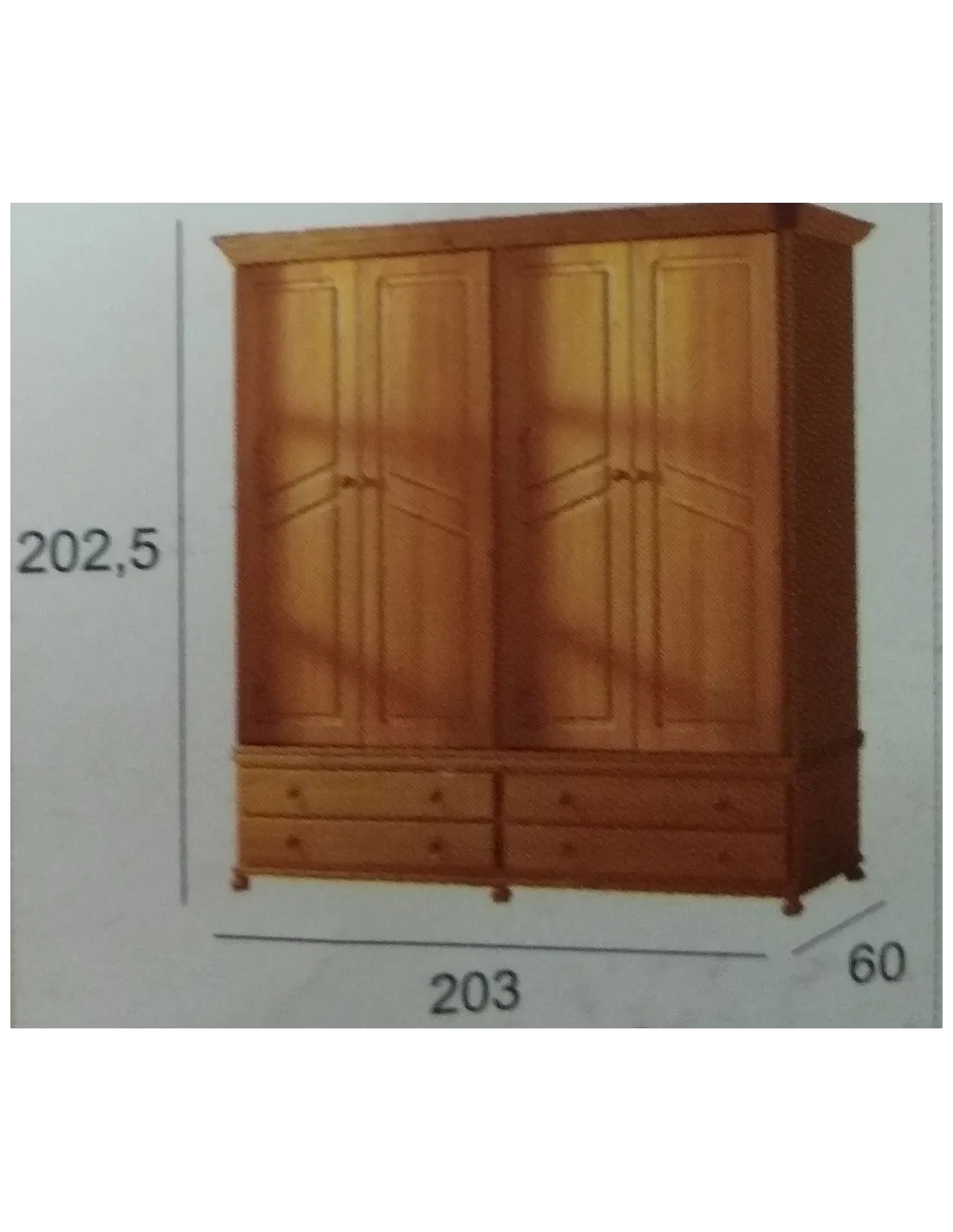 Armario Provenza en madera maciza de pino con 4 puertas con cornisa
