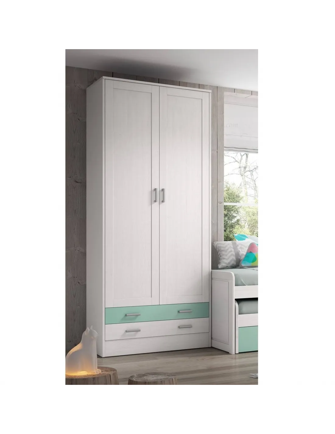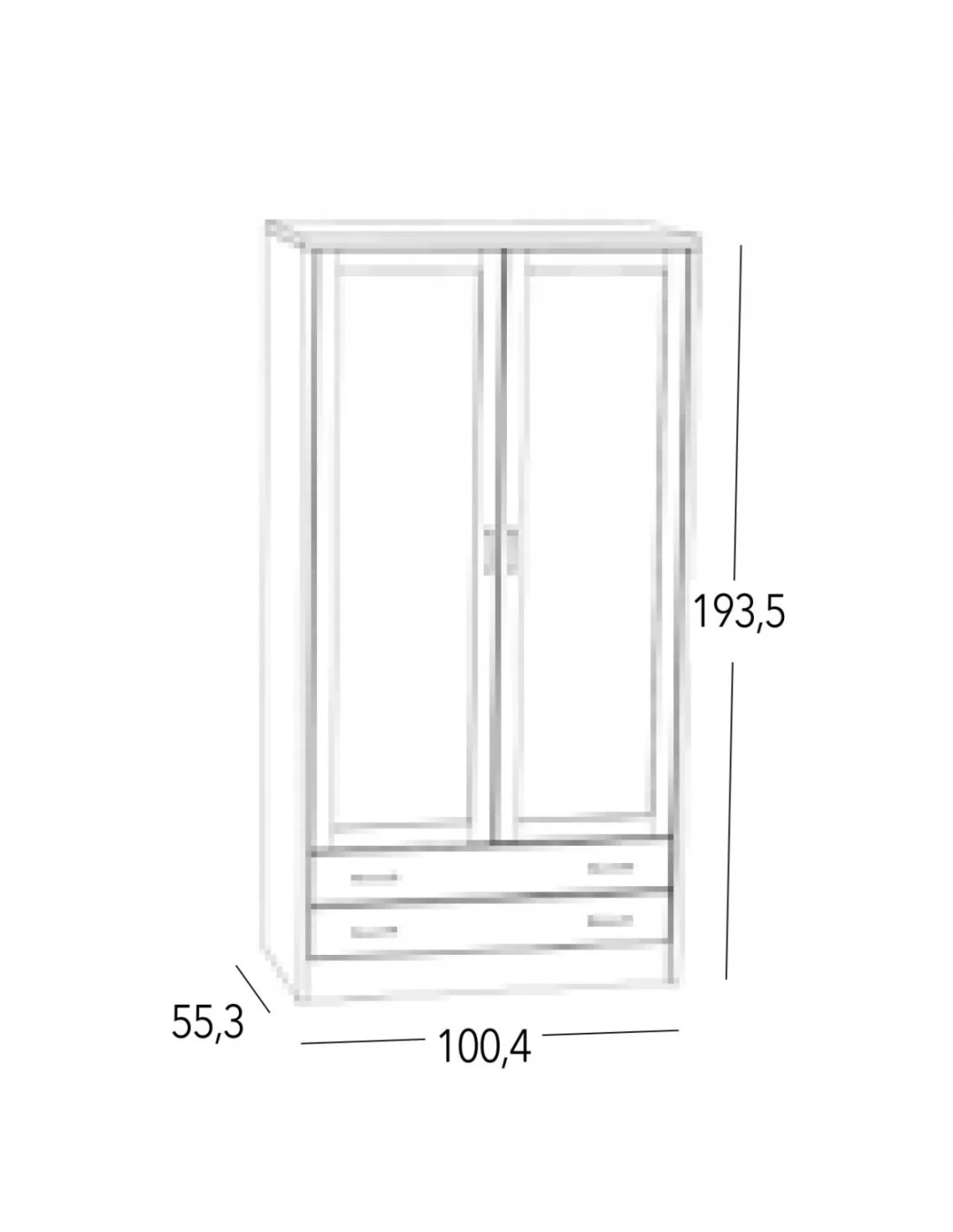 Este armario madera dos puertas se fabrica usando solo madera maciza de pino como materia prima, y viene con las siguientes medidas: