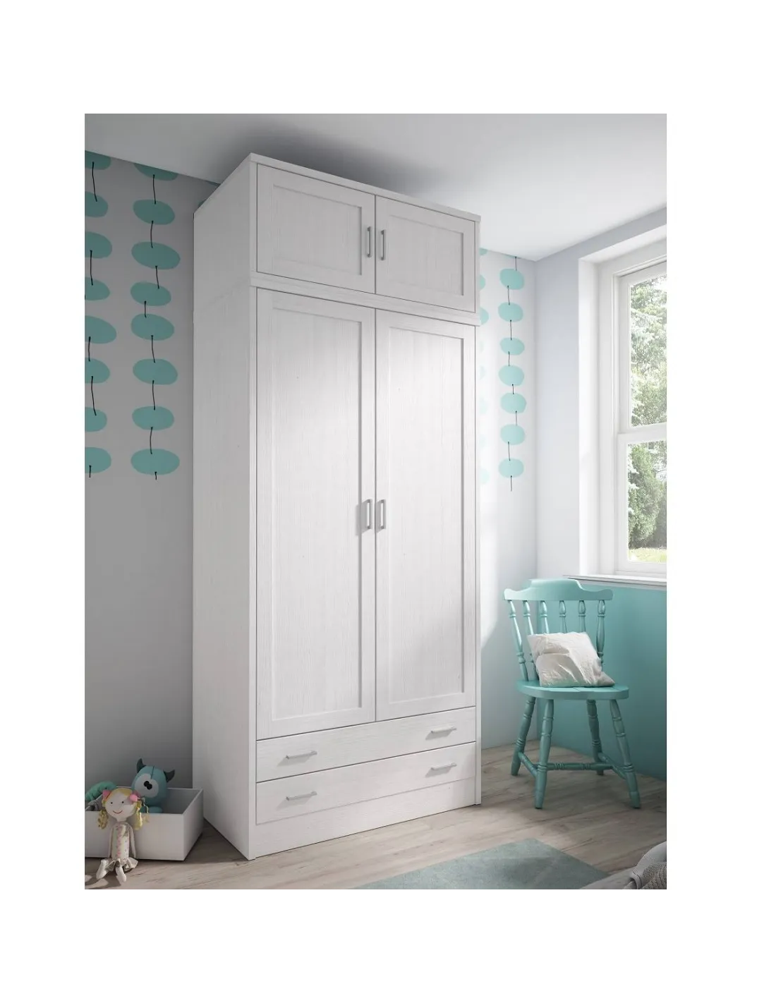 Este armario Coral 2 puertas con altillo está fabricado en España con madera de pino, y viene con las siguientes medidas: