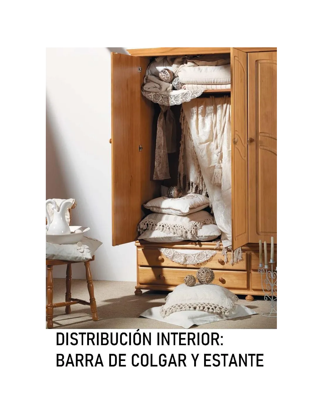 La distribución interior del armario cuenta con una barra de colgar y un estante en su parte superior, haciendo la veces de altillo.