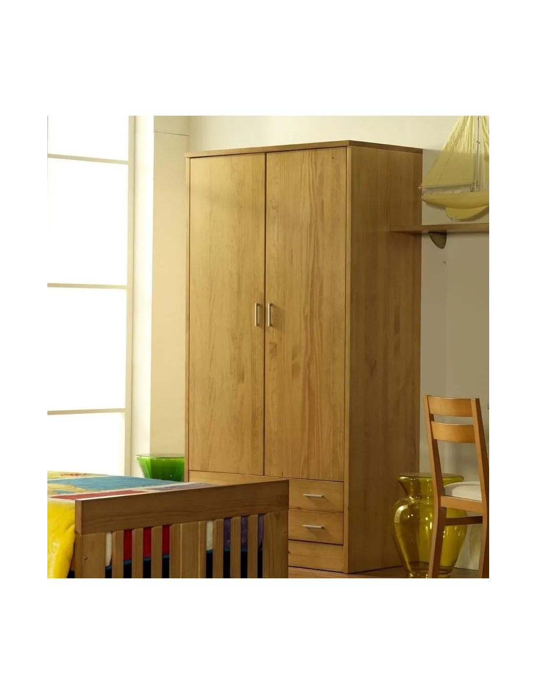 Armario de dos puertas macizas de fabricación nacional usando madera de pino como materia prima