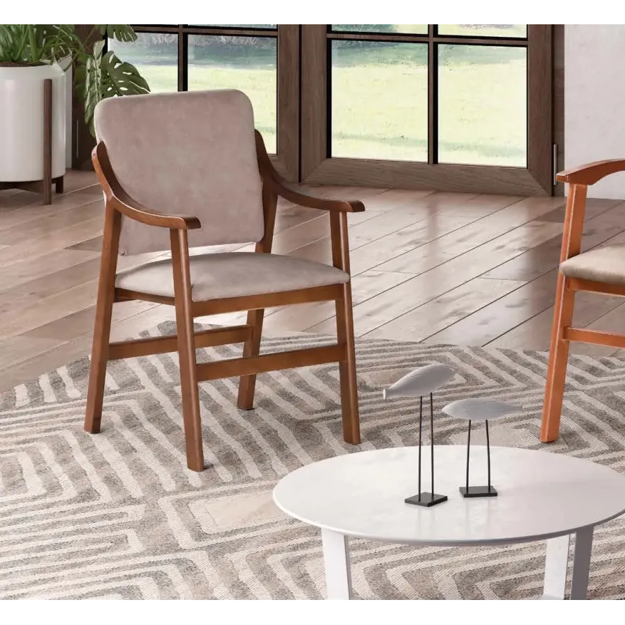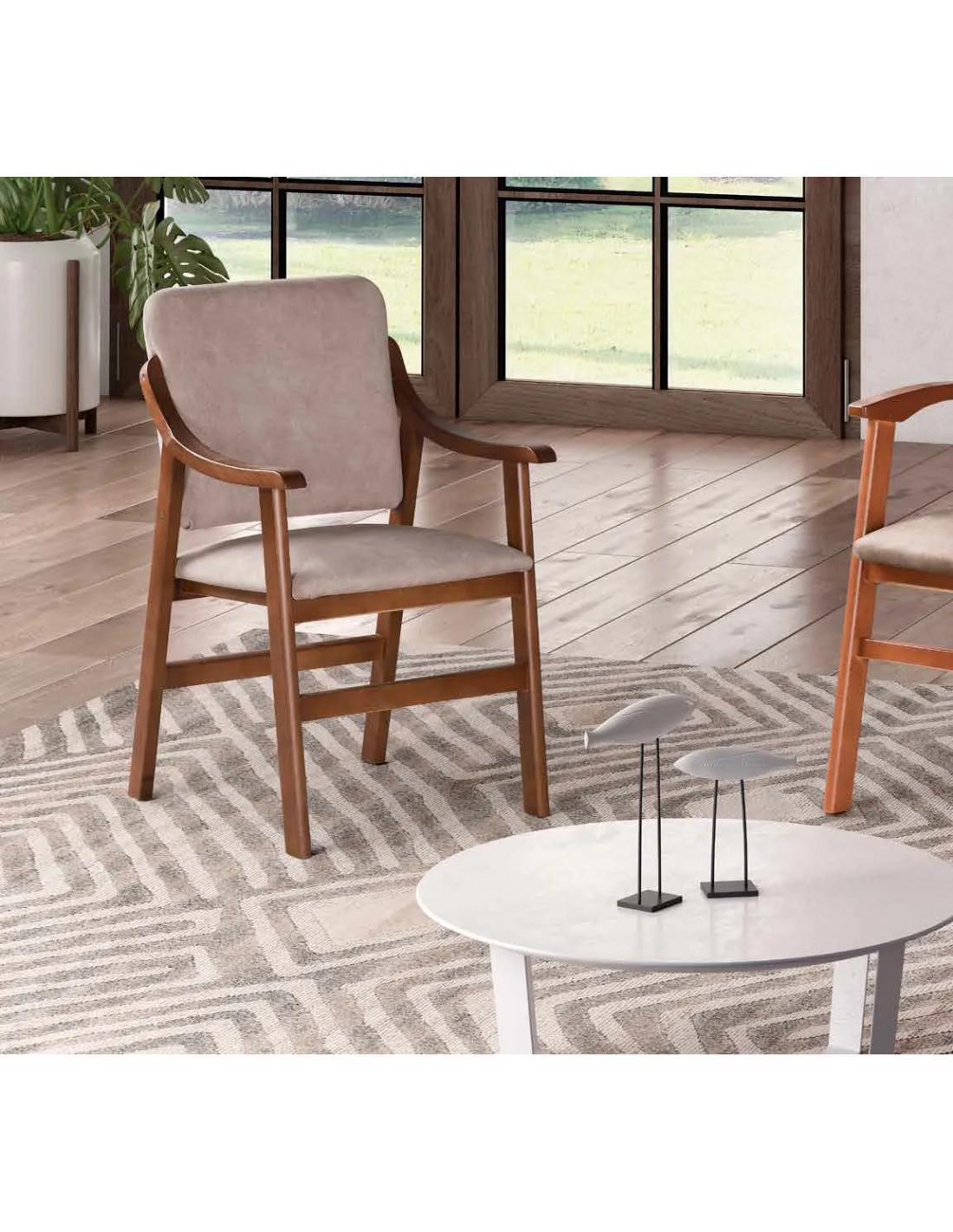 Sillón fijo tapizado de respaldo alto en serie de tela antimanchas con colores para la estructura en madera de haya, resistente y flexible, disponible en color haya, miel, cerezo, nogal, blanco y wengué.