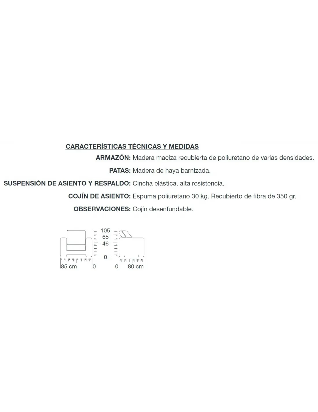 Las estructuras están hechas con madera maciza de haya de primera calidad con acabado de patas en barnizados a elegir, para mejorar la durabilidad del sofá.