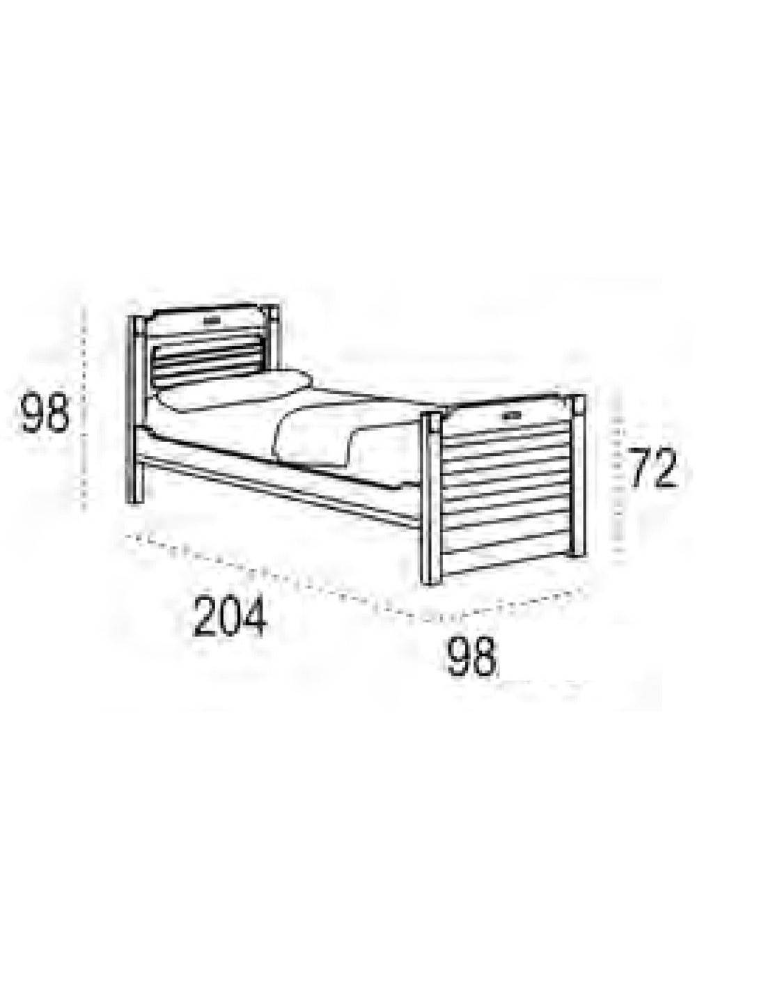 Esta cama juvenil de diseño clásico fabricada en madera de Fresno tiene las siguientes medidas (largo x alto x fondo en cm.): 204 x 98 x 98