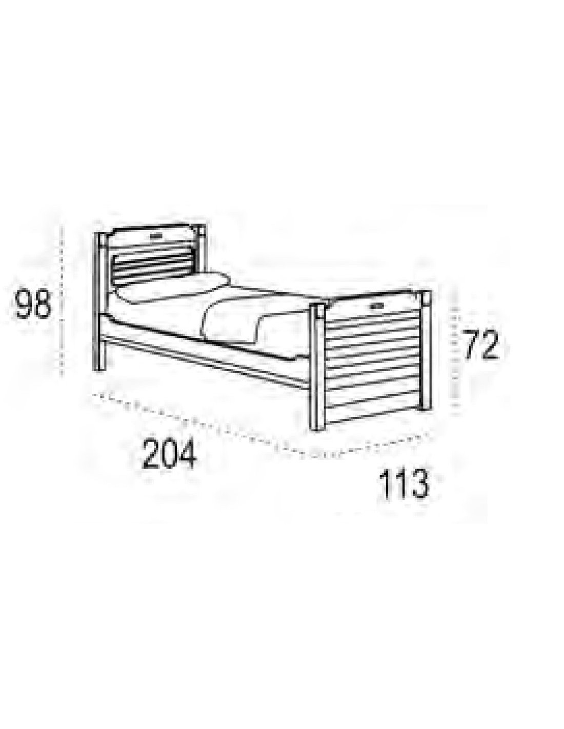 Esta cama juvenil 105 colonial fabricada en madera de Fresno viene preparada para dos colchones de hasta 105x190 cm. y tiene las siguientes medidas (largo x alto x fondo en cm.): 204 x 98 x 113
