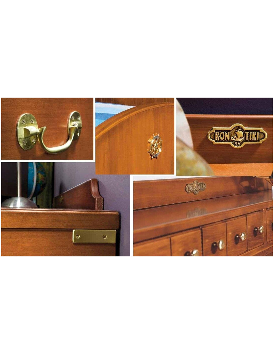 Diseño tomado de los barcos que marcaron época y confeccionados en madera noble de Fresno, adornados con herrajes de latón pulido y con la funcionalidad de un estilo de vida contemporáneo.