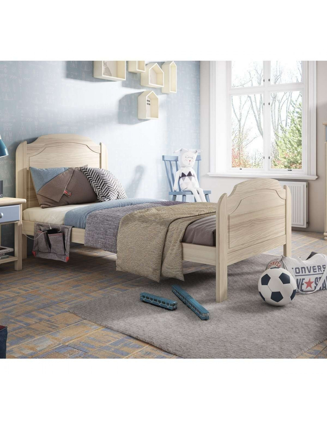 Se compone de cabecero, piecero, largueros y somier, todo ello fabricado en madera de pino maciza. Estas camas incluyen el somier de lamas de madera.