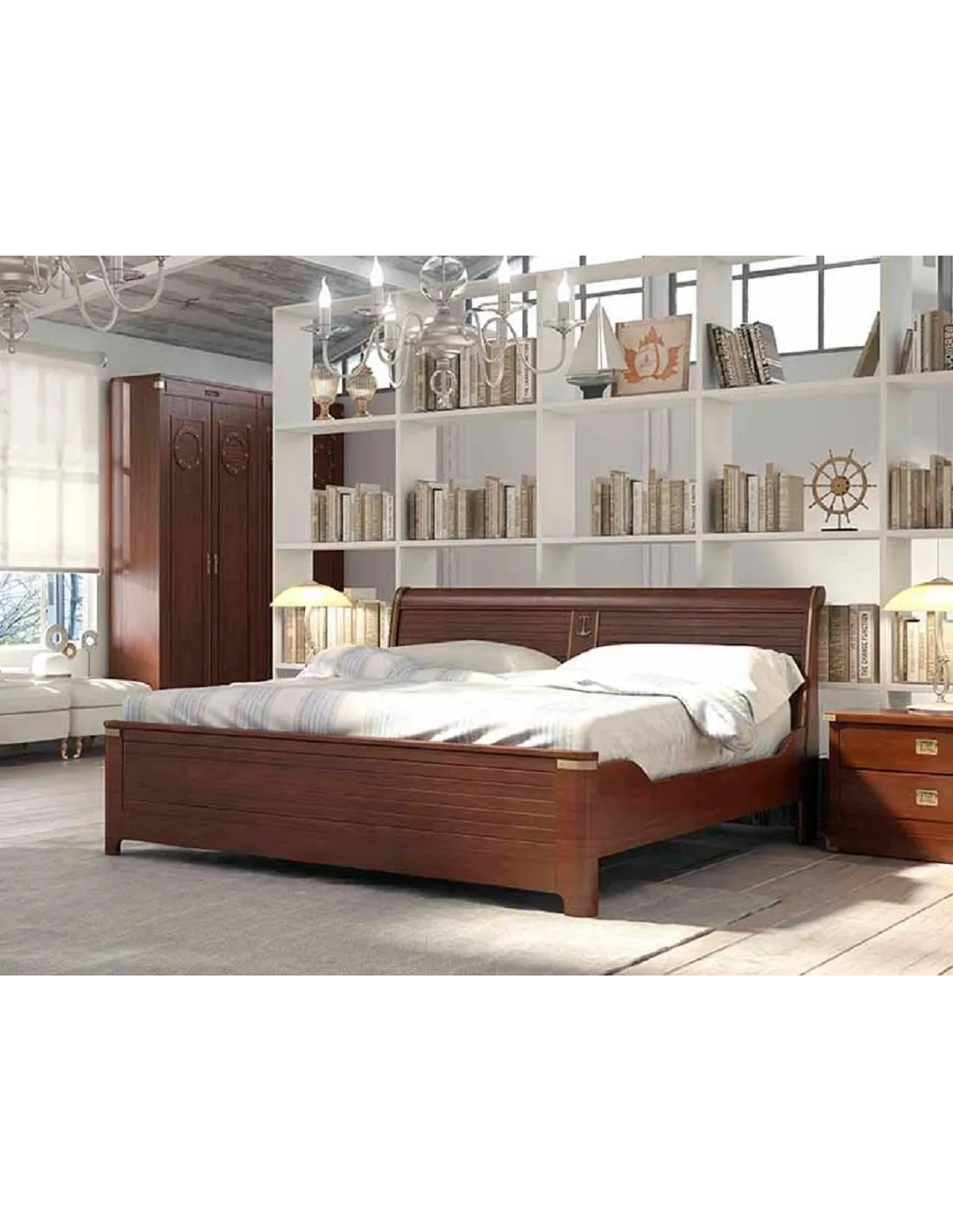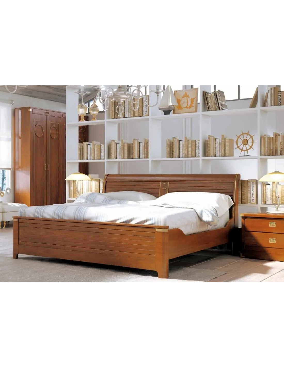 Esta cama de diseño colonial tiene unos acabados pulimentados y barnizados de primera calidad, con la posibilidad de elegir entre blanco decapado, nogal claro y nogal naútico, con los detalles del mueble y herrajes de latón pulido.