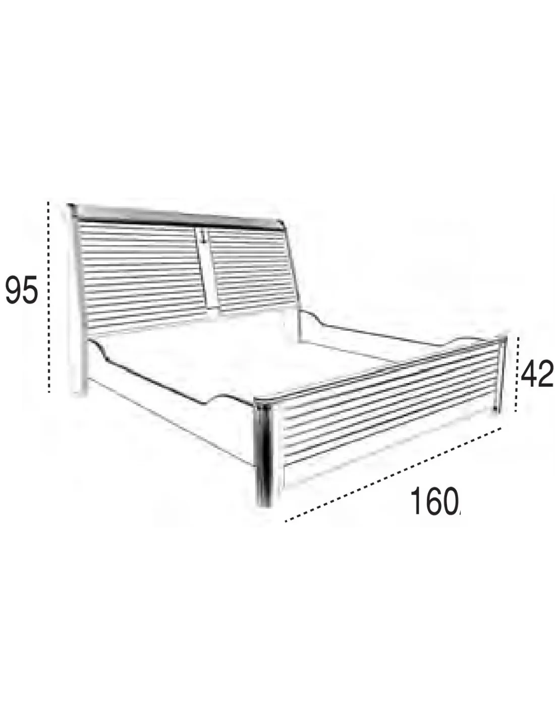 Esta cama de diseño colonial fabricada en madera de Fresno viene preparada para colchones de 150x190 cm. y tiene las siguientes medidas (largo x alto en cm.): 160 x 95 x 215