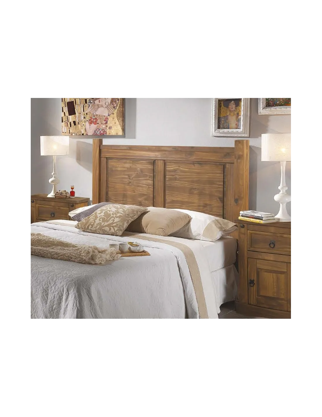 Cabecero colonial para cama de hasta 150 cm. en madera maciza de pino color nogal oscuro encerado en formato kit