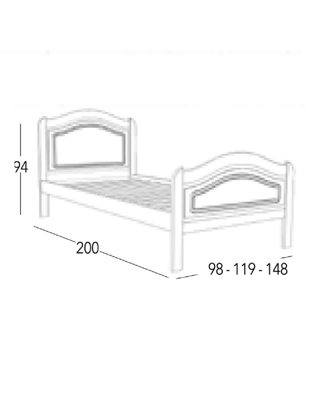 Se compone de cabecero, piecero, largueros y somier, todo ello fabricado en madera de pino maciza. Estas camas incluyen el somier de lamas de madera.