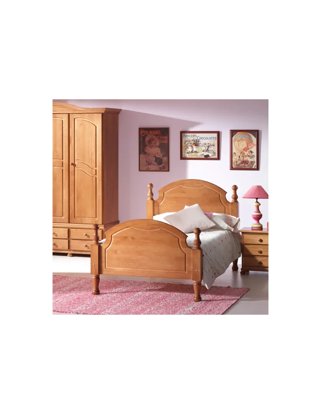 Cama completa o solo cabecero de estilo provenzal fabricado en madera maciza de pino y de fabricación española.