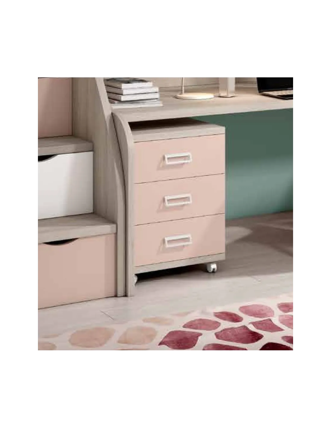 Mesita con tres cajones de guía metálica y ruedas para su fácil desplazamiento