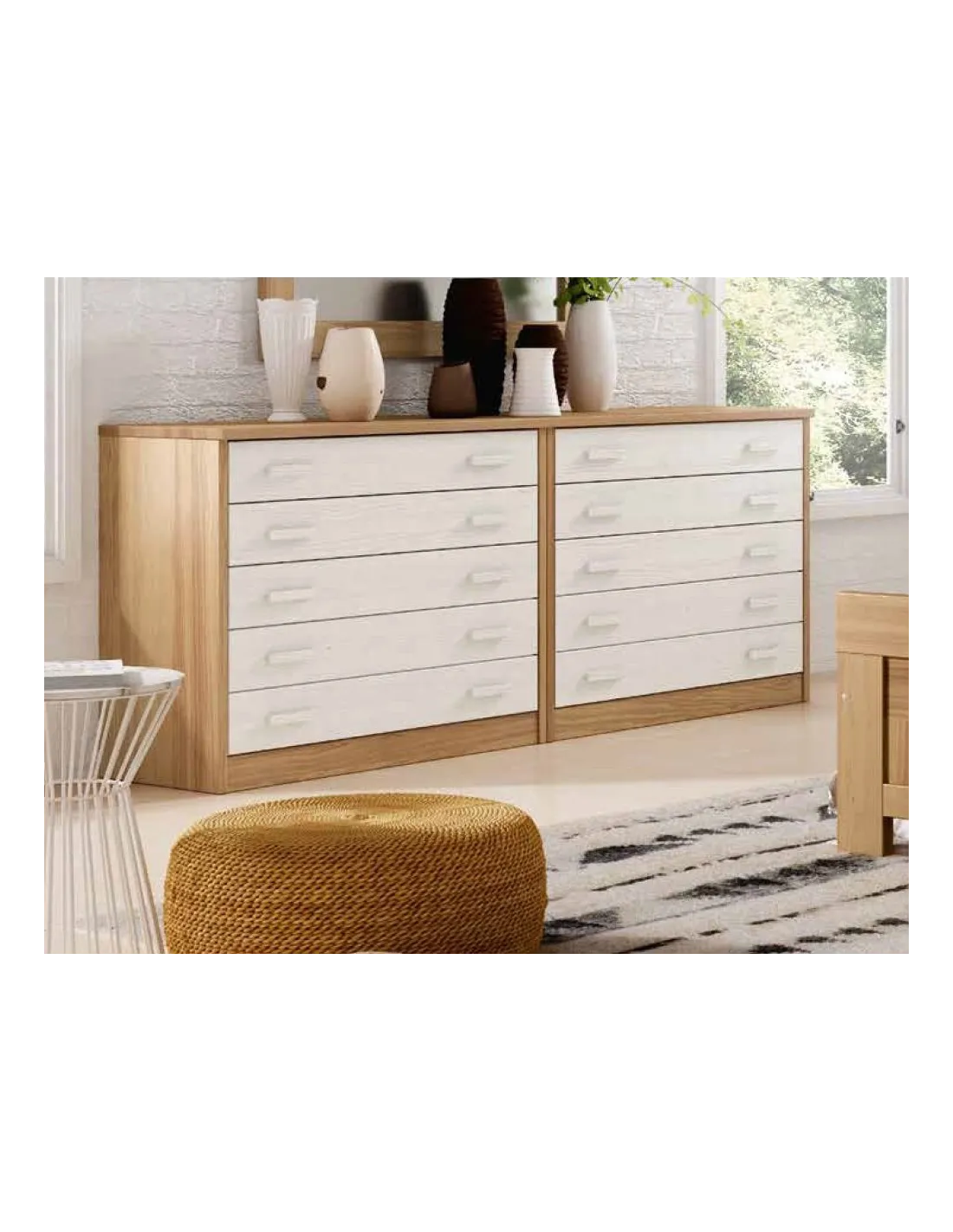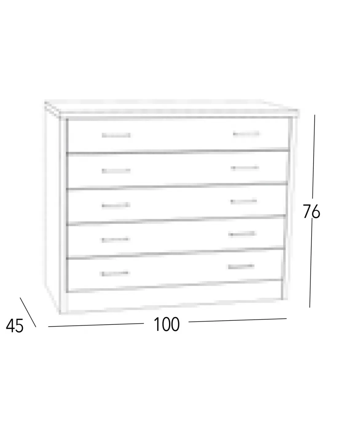 Esta cómoda Nova 5C está disponible con cinco cajones de guía metálica con capacidad de almacenaje y tiradores a elegir. Presenta las siguientes medidas totales en cm.: