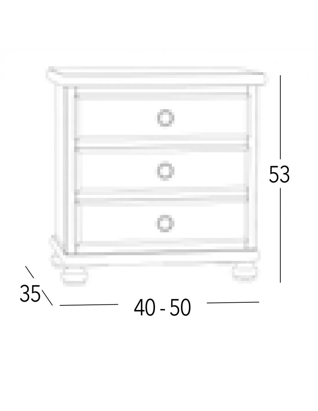 Esta mesita de noche Provenza 3C está disponible con tres cajones de guía de madera y gran capacidad de almacenaje, con las siguientes medidas totales en cm.: