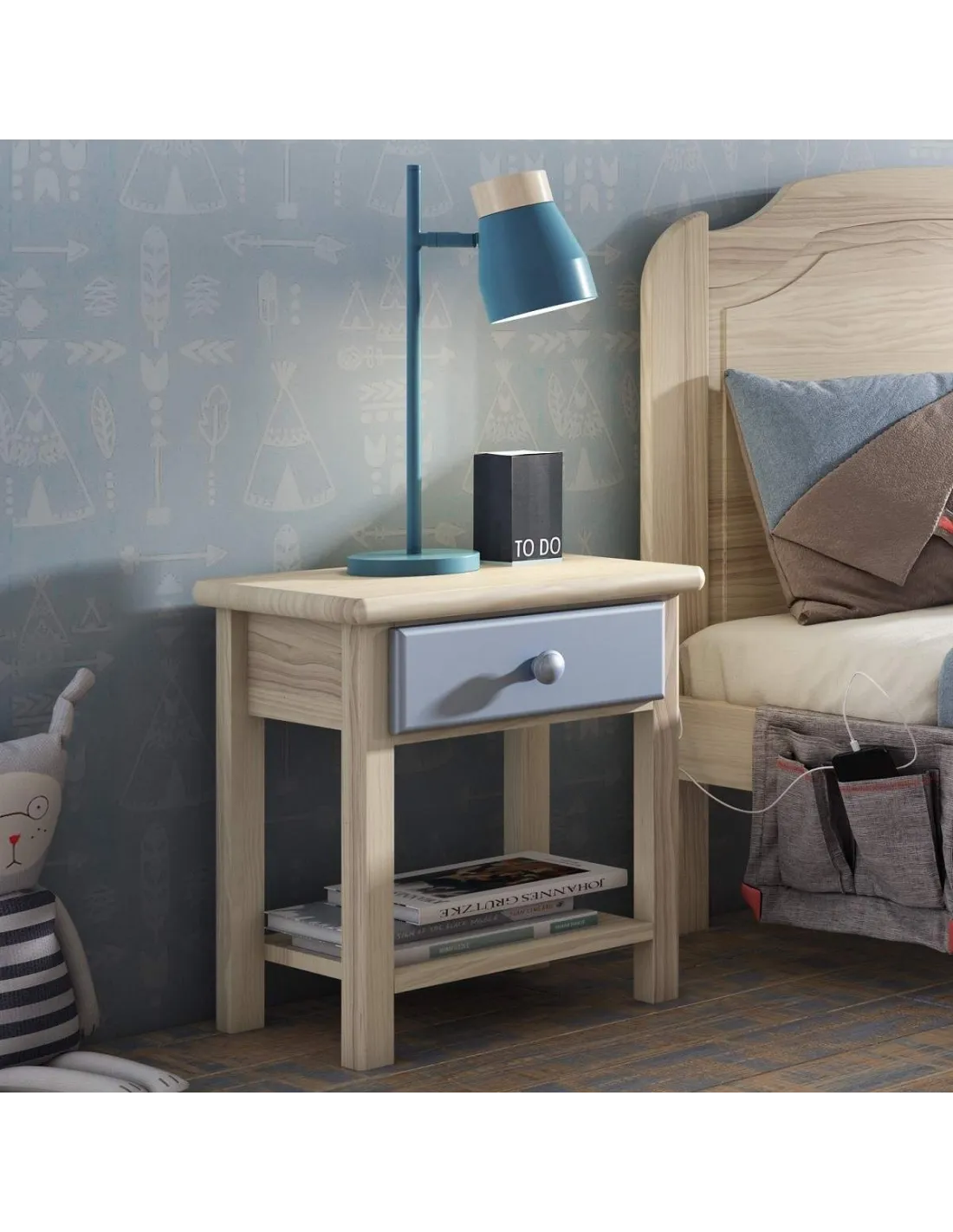 Esta mesita de noche Provenza juvenil 1C se puede personalizar en base a cuatro series de colores con terminaciones barnizadas, lacadas, decapés y glaseados.