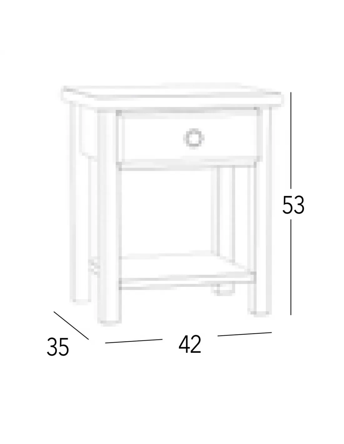 Esta mesita de noche Provenza 1C está disponible con un cajón de guía de madera y gran capacidad de almacenaje, con las siguientes medidas totales en cm.: