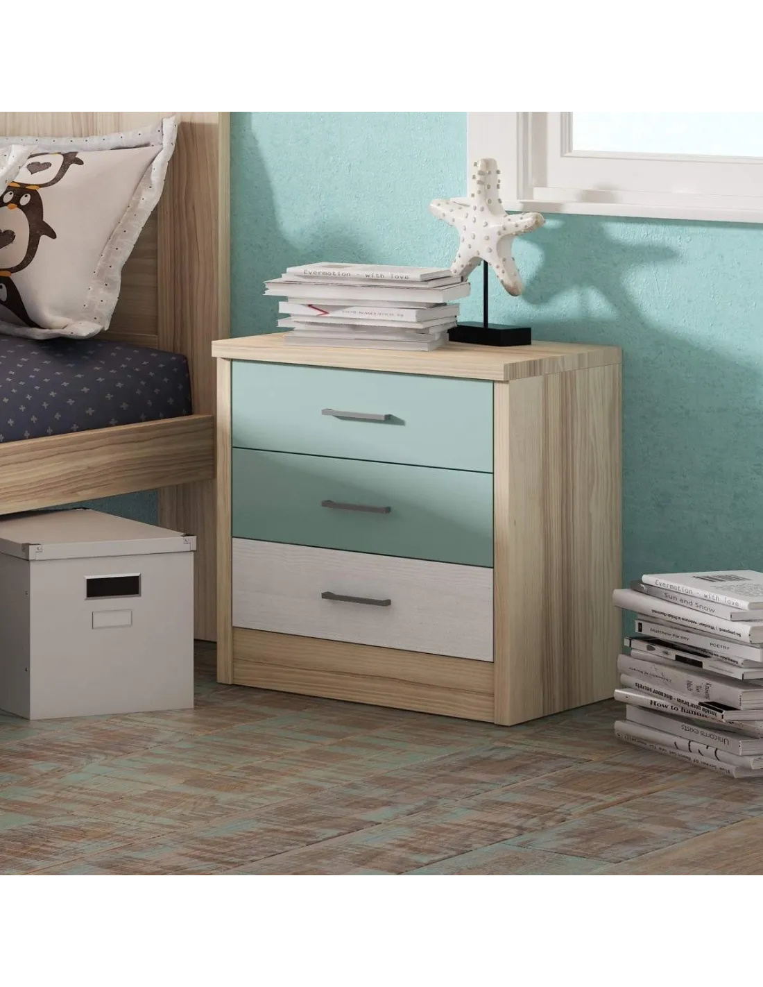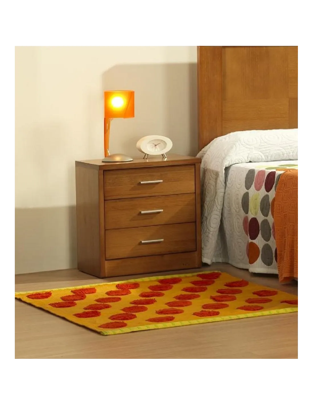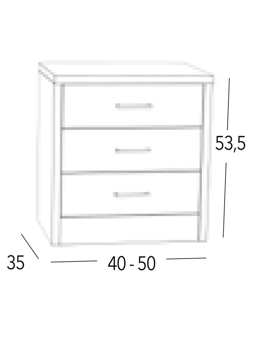 Esta mesita de noche moderna madera 3C está disponible con tres cajones de guía metálica de deslizamiento suave y gran capacidad de almacenaje, con las siguientes medidas totales en cm.: