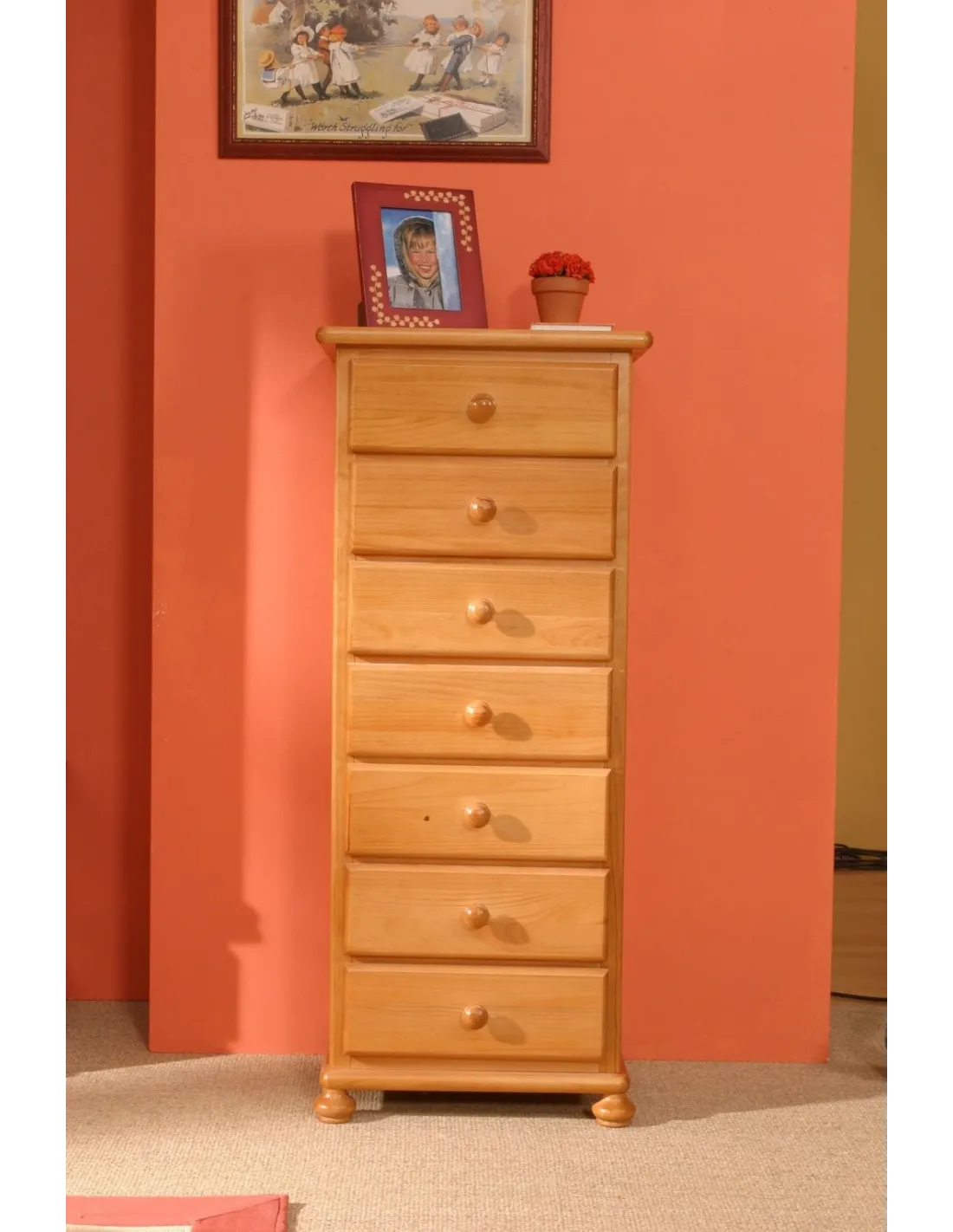 Tanto las estructura como los cajones están fabricados en su totalidad con madera de pino maciza de primera calidad.