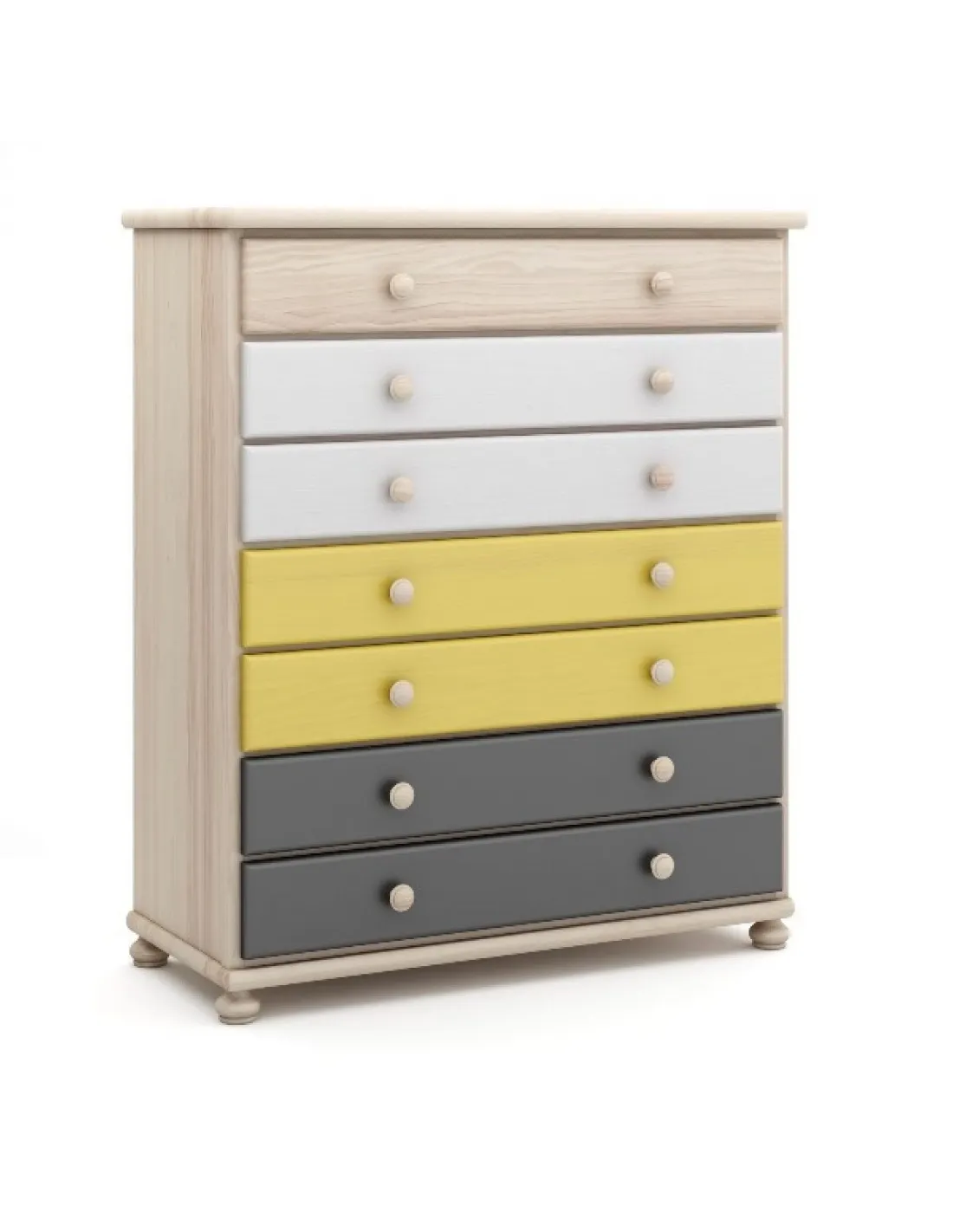 Tanto las estructura como los cajones están fabricados en su totalidad con madera de pino maciza de primera calidad.