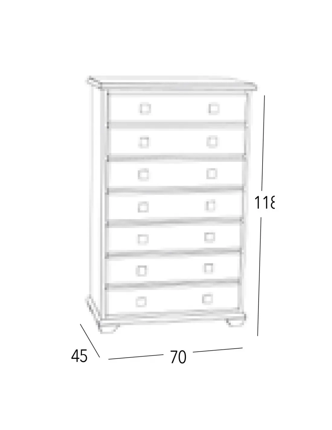El Sinfonier Provenza Maya 7C está disponible con siete cajones de guía de madera con capacidad de almacenaje, y presenta las siguientes medidas totales en cm.: