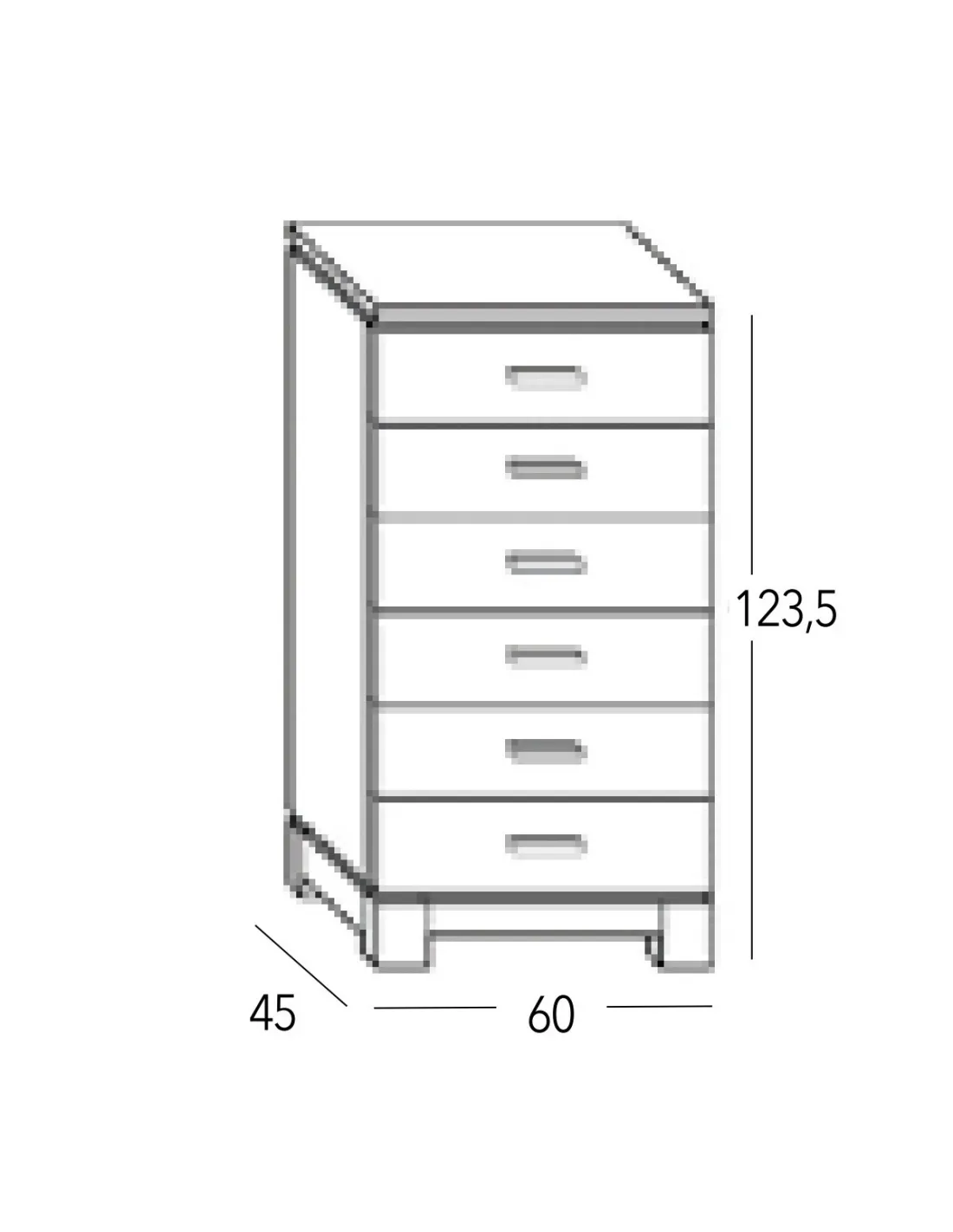 El sinfonier VZ 6C está disponible con seis cajones de guía metálica con gran capacidad de almacenaje. Presenta las siguientes medidas totales en cm.: