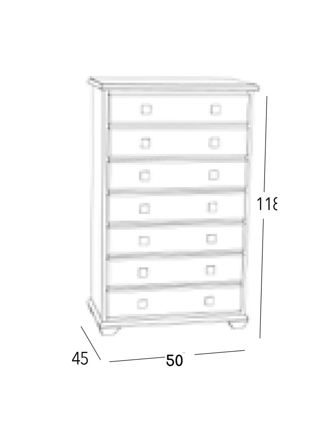 El Sinfonier 50 Provenza Maya 7C está disponible con siete cajones de guía de madera con capacidad de almacenaje, y presenta las siguientes medidas totales en cm.: