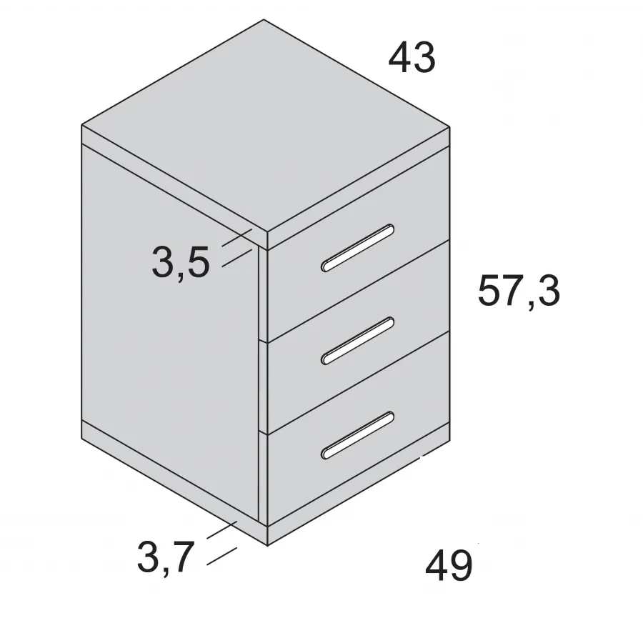 Esta mesita noche 3 cajones y 49 cm. viene con cajones de cierre amortiguado y tiene las siguientes medidas totales: