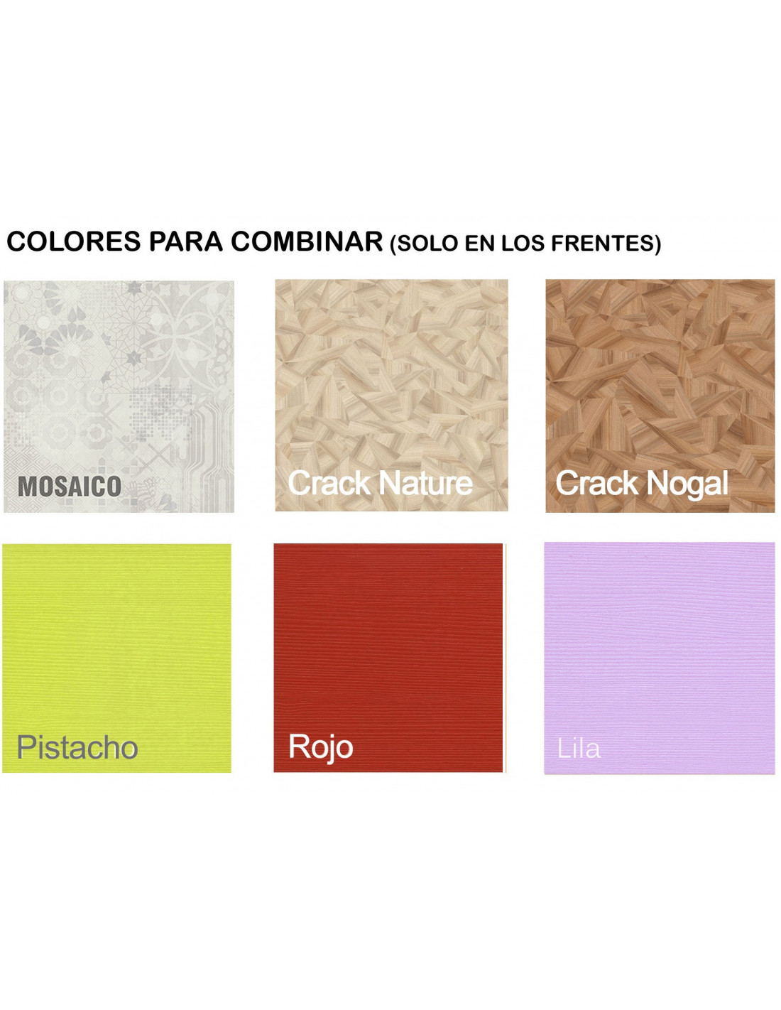 - Colores base: aplicables al cajón exterior, son los colores blanco - olivo - antracita - cerezo - roble - wengué - chocolate - vison - fresno - glacial - vintage - cemento - cambrian - ébano.