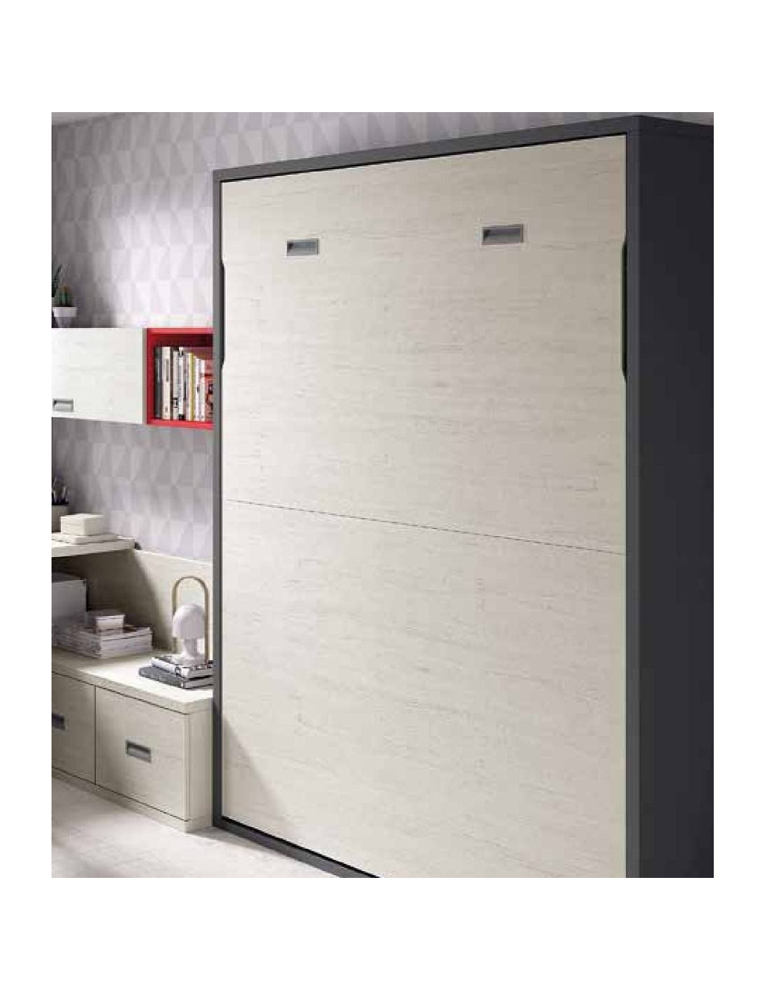 Este mueble incluye la cama abatible vertical con estanterías interiores preparada para alojar colchones de 135x190 o 135x200 cm.
