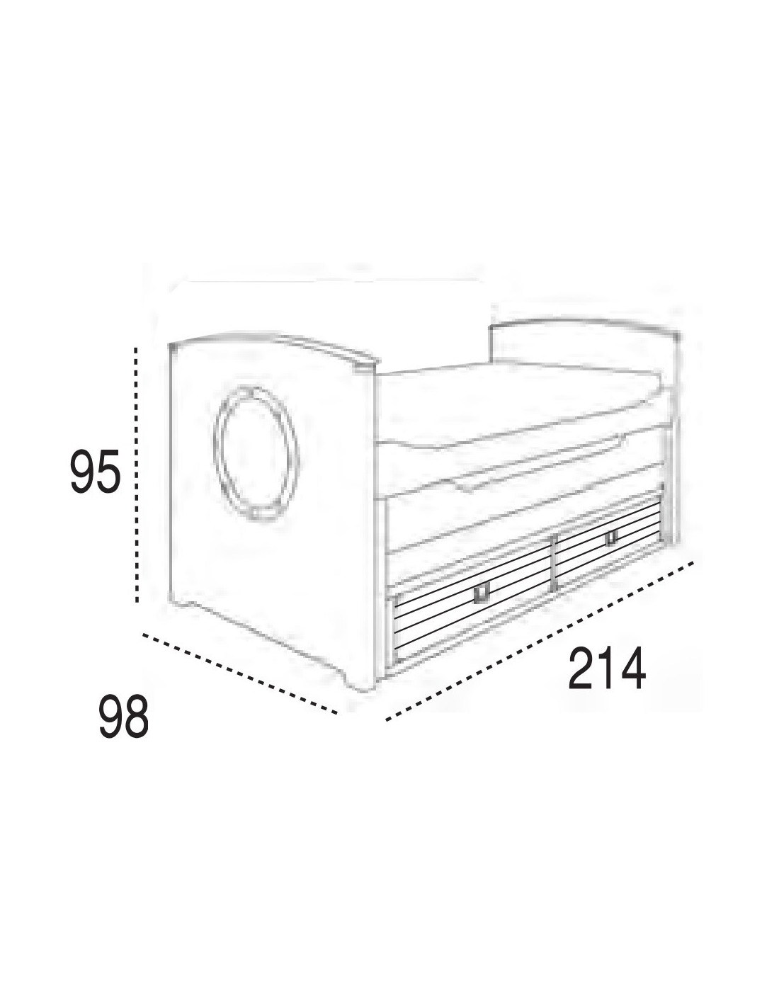 Esta cama compacta 90 maciza Camarote fabricada en madera de Fresno tiene las siguientes medidas (largo x alto x fondo en cm.): 214 x 95 x 98