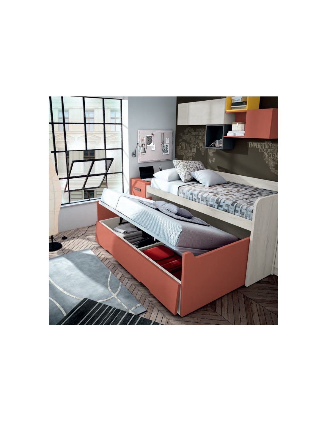 Cama compacta para colchones de 105x190/180 con frontal abatible