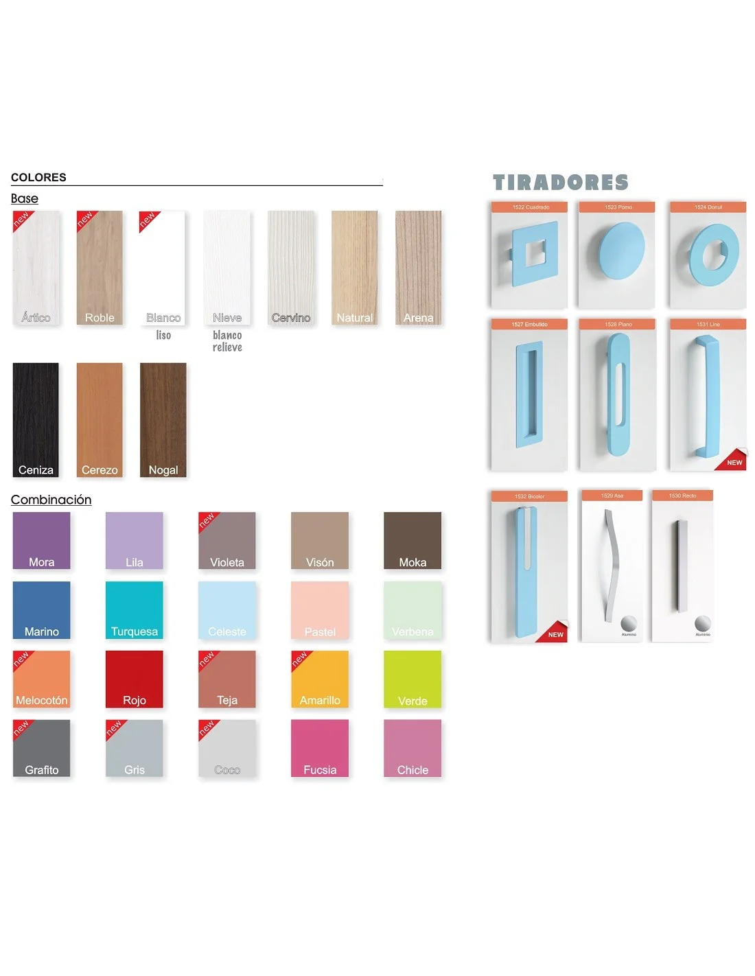 TIRADORES: por defecto se manda con el tirador modelo "Line". Puede escoger cualquiera de los colores de combinación para ellos.