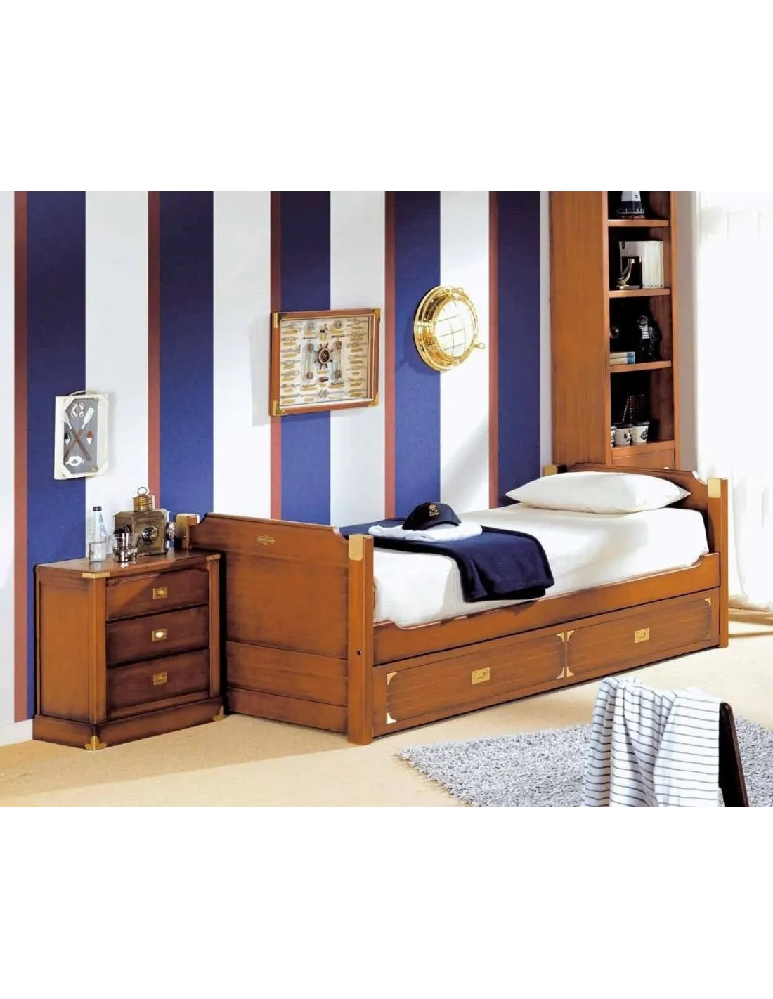 La fabricación de esta colección de muebles está elaborada y terminada de formar individualizada y artesanal es todas sus fases, desde el corte de la madera hasta su pintado a mano, así como el pulido de sus piezas. Cuidando cada detalle para obtener un mueble de calidad y único, que pueden transportarte a un mundo marino, con viajes y aventuras que vivirás cada día.