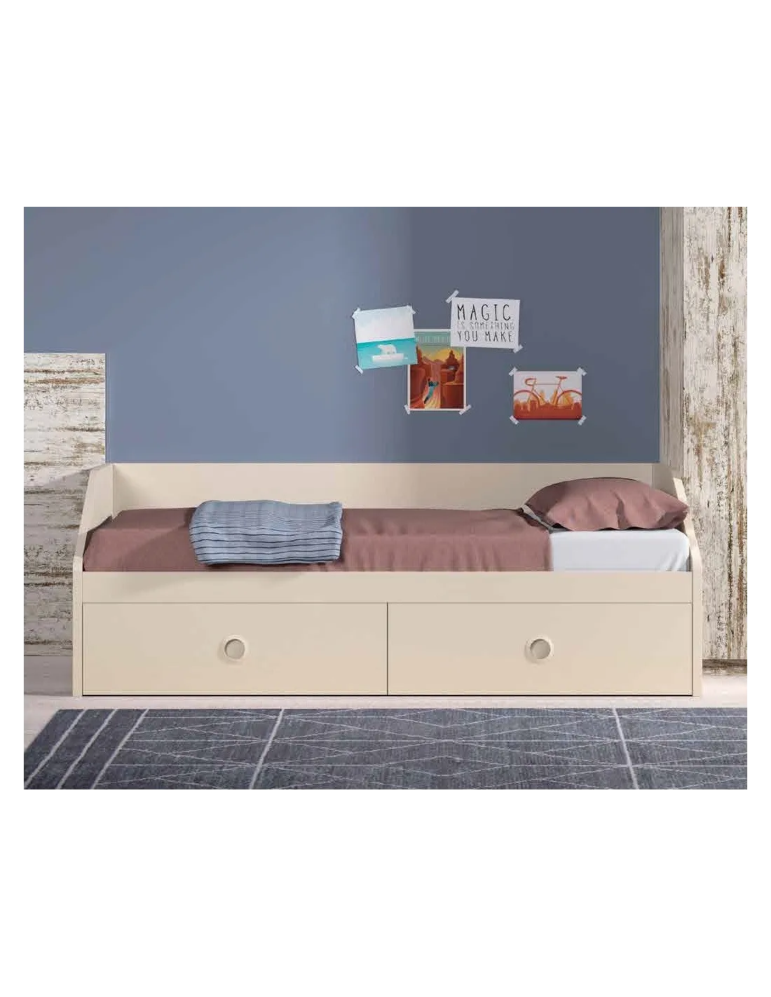 Cama tipo sofá nido multimedida con 2 contenedores de gran capacidad con guía metálica autocierre