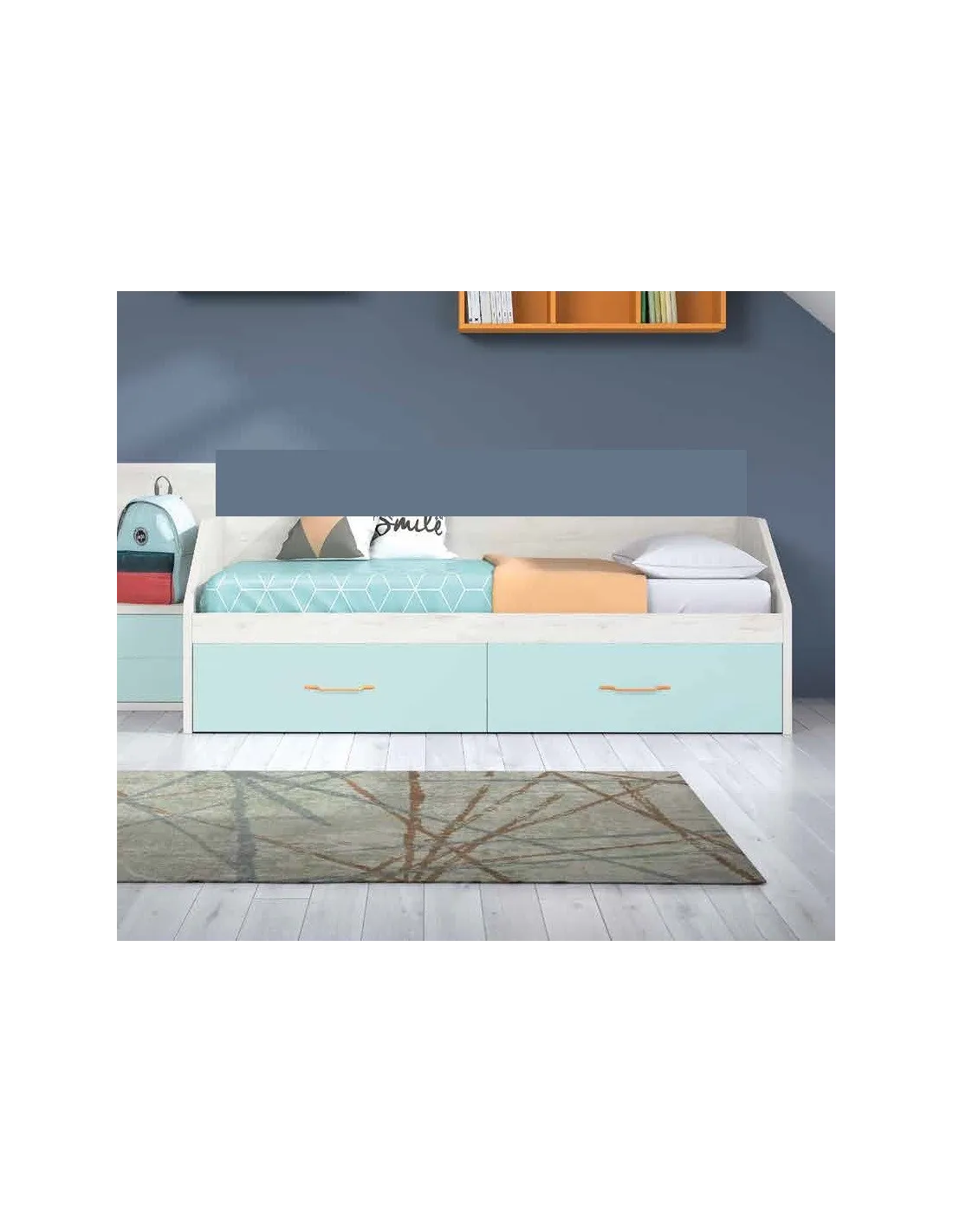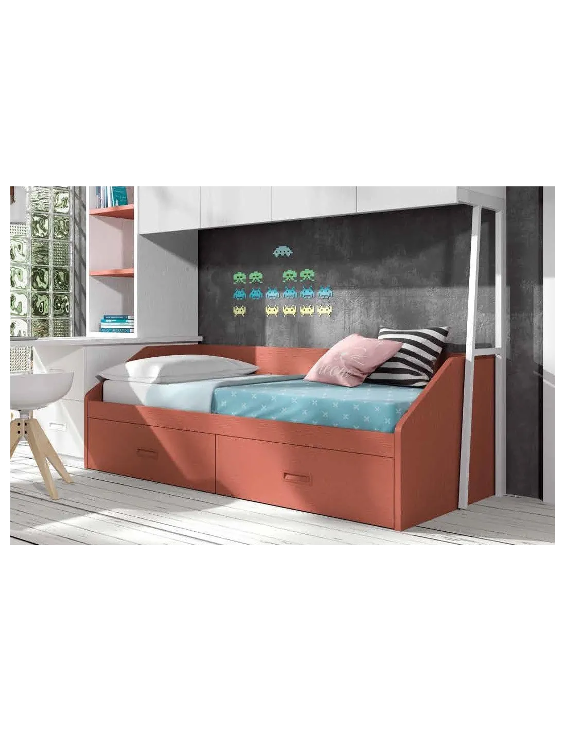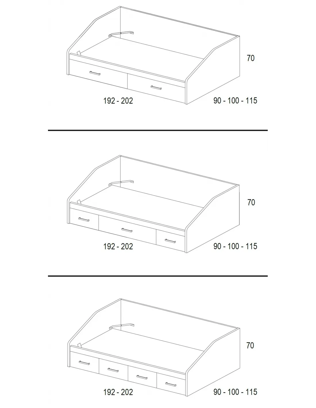 Esta sofá nido con 2 contenedores de gran capacidad con guía metálica autocierre está disponible para colchones de 80 / 90 / 105 cm. de ancho y 180 / 190 cm. de largo. Tiene siguientes medidas totales en largo x alto x fondo (en cm.):