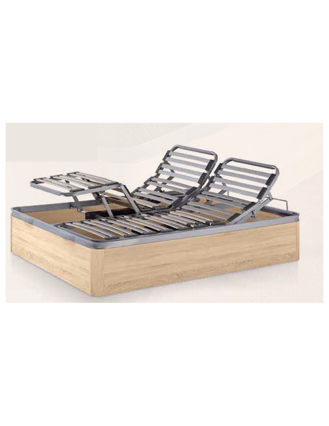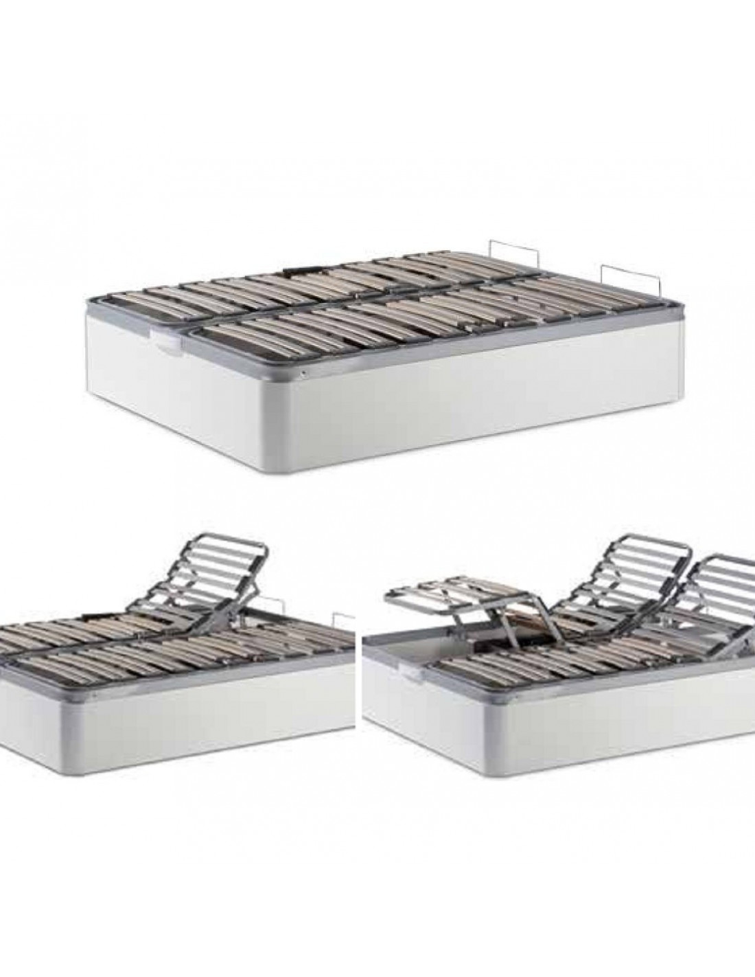 Conjunto compuesto por dos camas articuladas independientes a motor, con dos bastidores y un solo cajón completo. Está disponible en múltiples configuraciones y se pueden hacer en las siguientes medidas (expresadas en cm.):