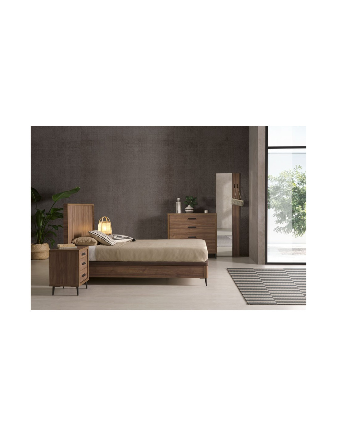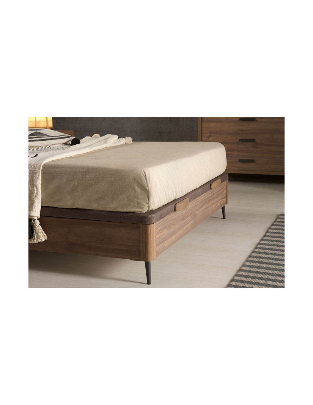 Este canapé Nice pata metálica matrimonio está disponible en siete colores de madera para el cajón (nórdico, blanco, nature, roble, nogal y carbón), con la base 3D con color a elegir igualmente.