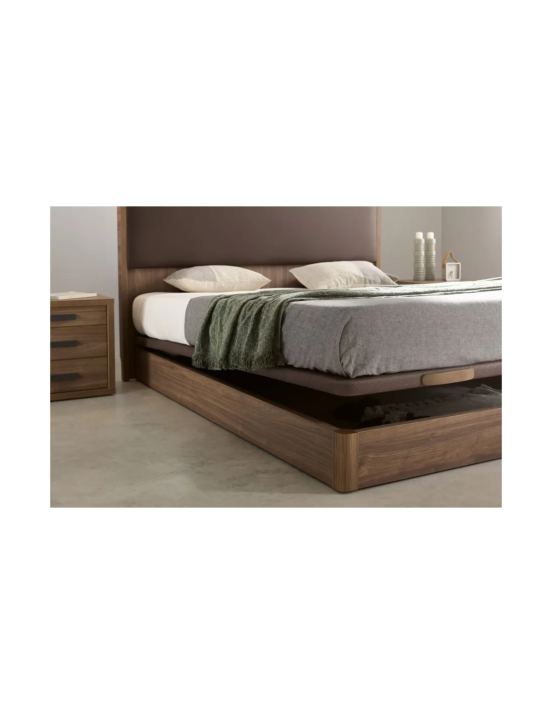 Para los que no quieren renunciar al diseño, presentamos el canapé Cool con un diseño actual con un diseño de perfil bajo. Te parecen demasiado altos las camas actuales con canapé? ¿Tienes un colchón muy grande y quieres poder sentarte cómodamente en la cama? para estos casos en los que se demanda una altura inferior de la cama pero no queremos renunciar al espacio de almacenaje, se propone esta alternativa radical, ideal para las personas a las que los canapés convencionales les resultan demasiado altos o el diseño resultante demasiado clásico.