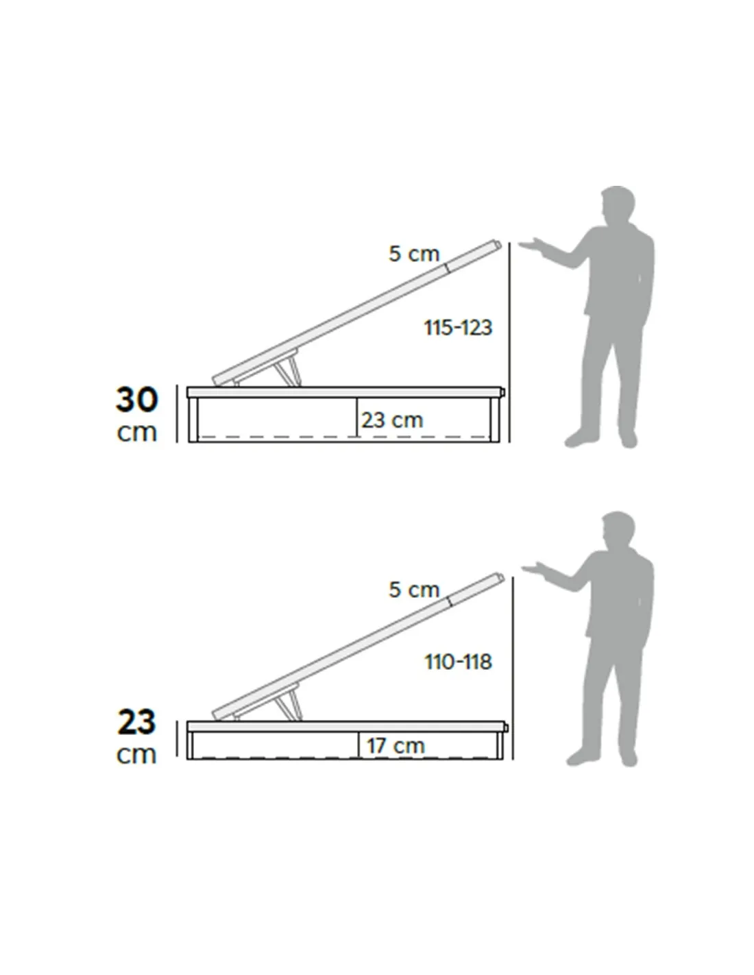 - Altura interior canapé: 17 / 23 cm.