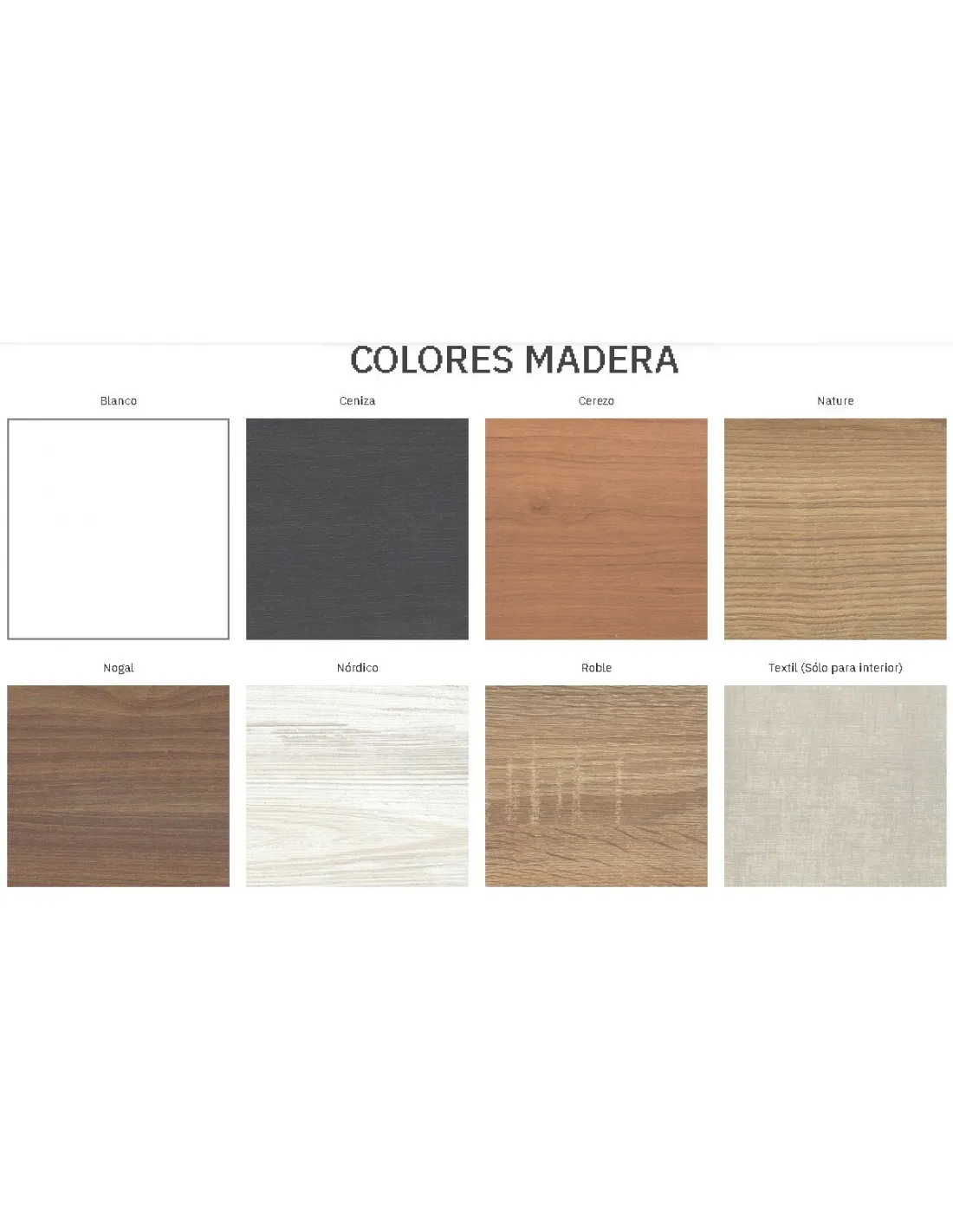 Acabados disponibles para el canapé