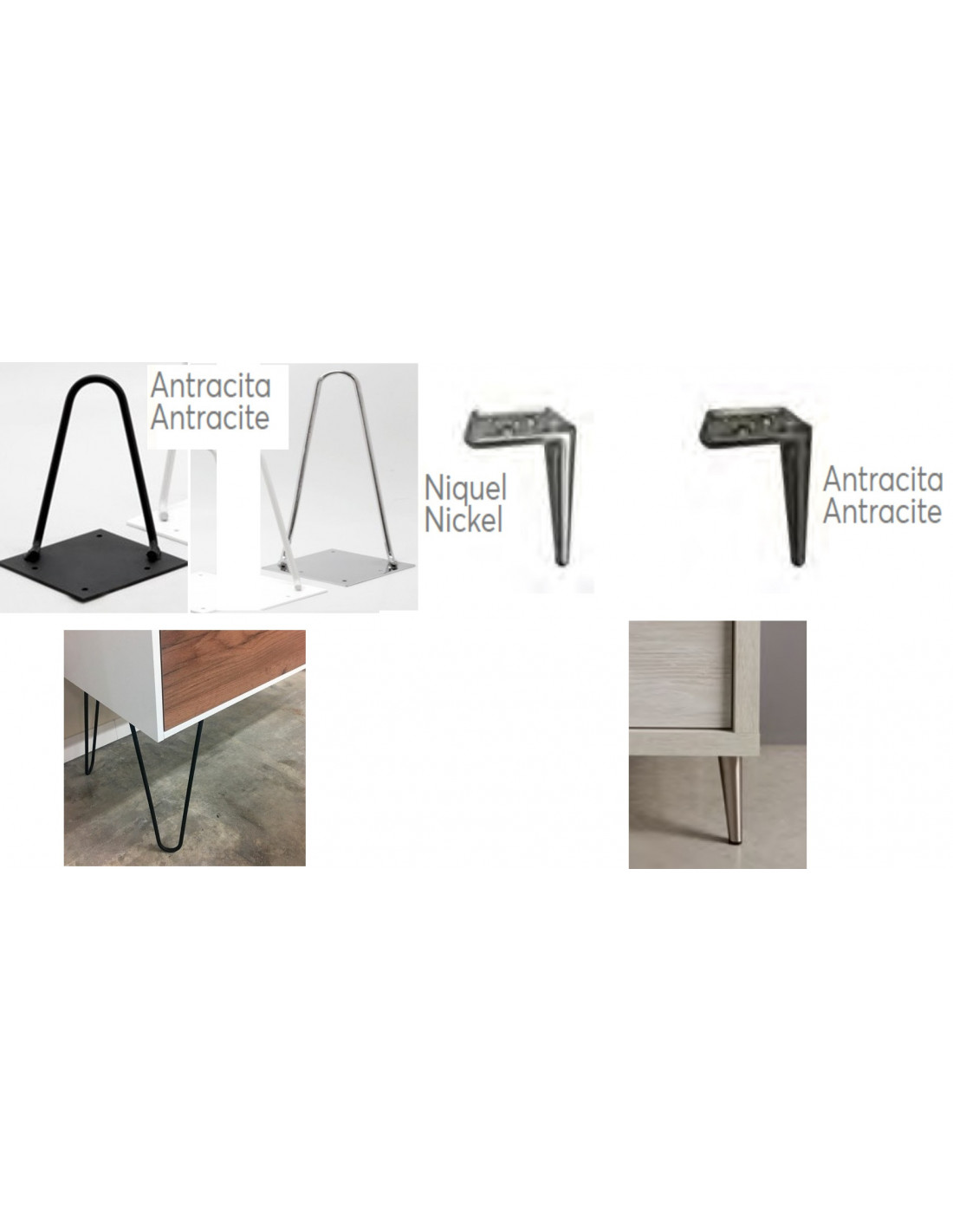 Y por último, estos canapés pueden llevar patas metálicas de dos modelos: Tacón (aguja recta metálica níquel o antracita) y V12 (también antracita o níquel).