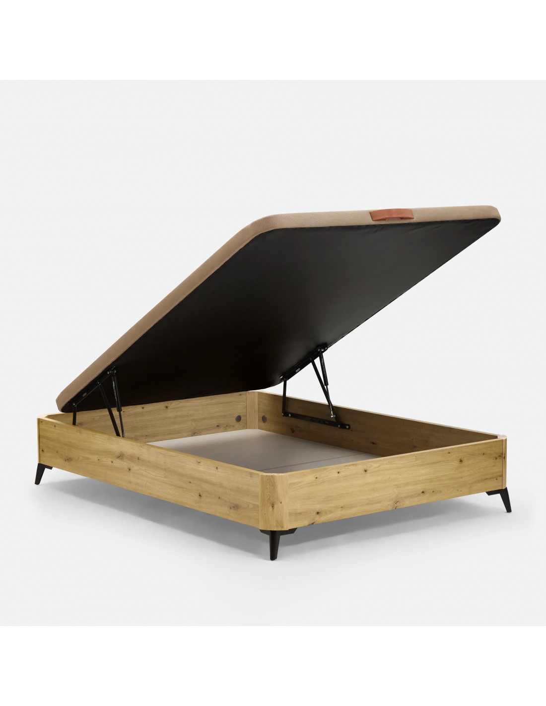 Le ofrecemos este canapé abatible modelo Pata Alta viene con la estructura del cajón del canapé compuesto por tableros de 30 mm. de grosor con un fonde de 16mm. de grosor atornillado, lo que da un plus de estabilidad, resistencia y durabilidad al conjunto. Cuenta con 4 patas metálicas de primera calidad y cuatro patas extra de refuerzo para la zona central del canapé. Base tapizada reforzada con bastidor metálico y tirador de madera, además del sistema hidraúlico de apertura de la más alta calidad.