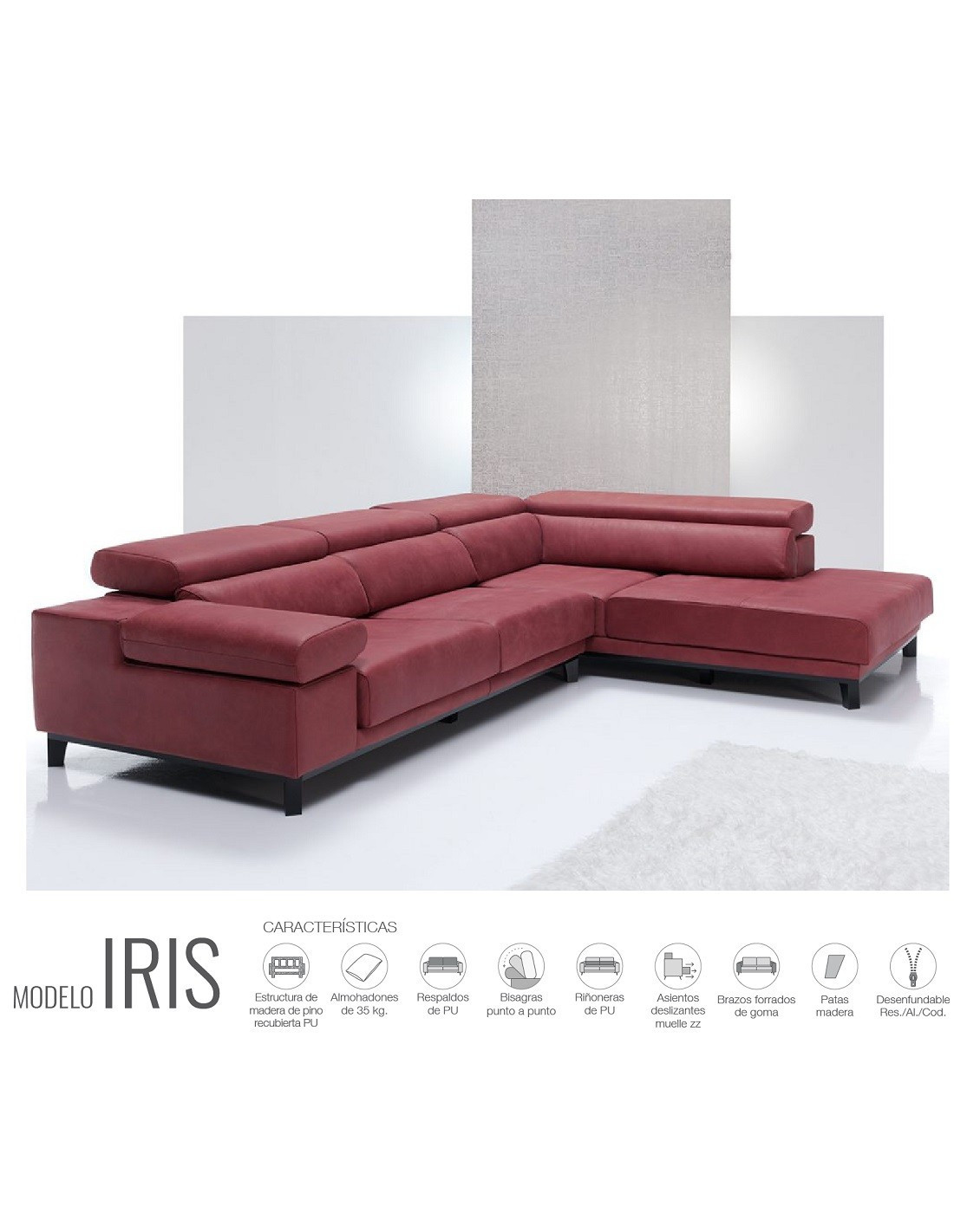 Iris es el estilo de sofá de diseño moderno y sofisticado, cómodo y duradera, ideal para tu salón. Fabricado con materiales de gran calidad, presenta un diseño de líneas muy depuradas y acabados al detalle que desprenden un toque de personalidad y elegancia para cualquier estancia.